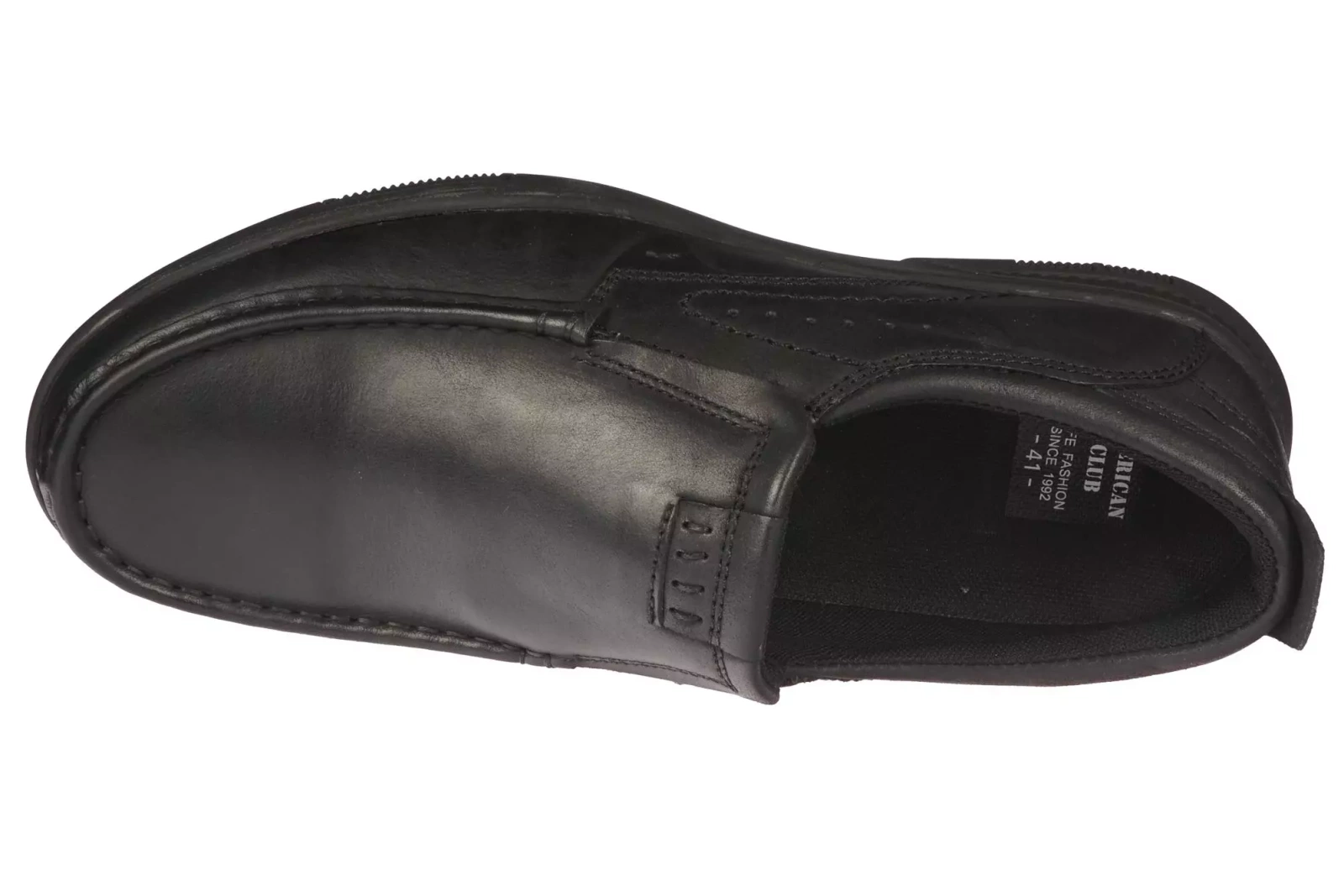 - Czarne męskie półbuty American Club wykonane ze skóry naturalnej, zapewniają niezrównany komfort i elegancję. Wsuwane półbuty szybko się zakładają, a dzięki dziurkowanej konstrukcji zapewniają odpowiednią wentylację.