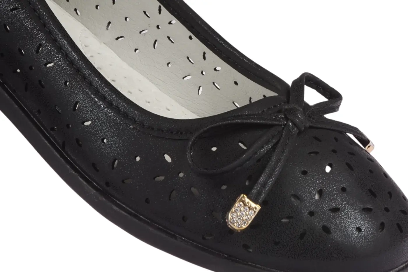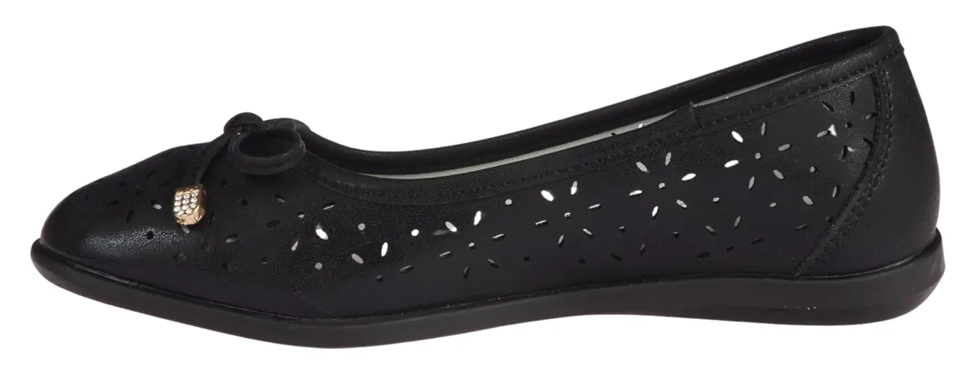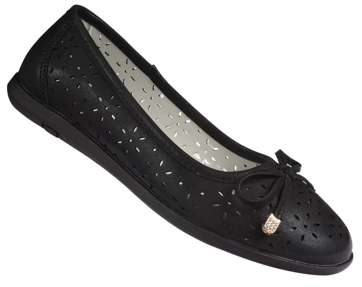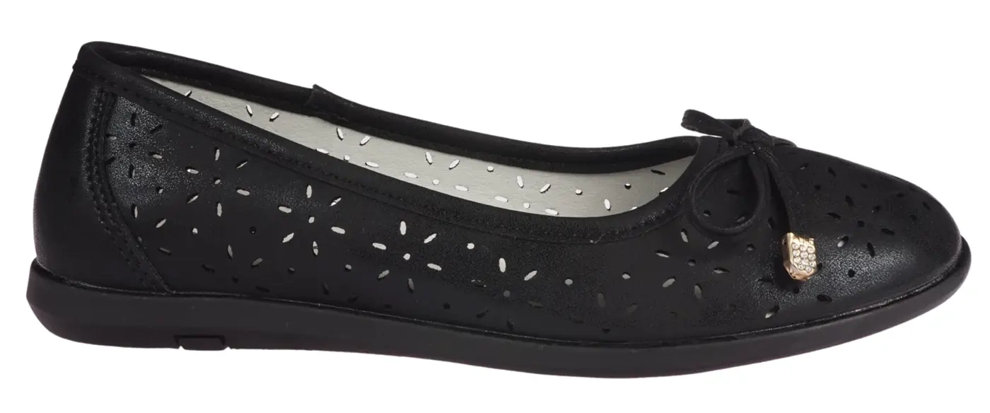 Czarne baleriny Apawwa wyróżniają się eleganckim, a zarazem prostym designem, który świetnie komponuje się z różnymi stylizacjami. Kokarda na przodzie dodaje całości subtelnego uroku, a perforowana cholewka wprowadza ciekawy element do klasycznego fasonu. Taki wybór to doskonała propozycja na letnie dni, ale także na bardziej formalne okazje.
