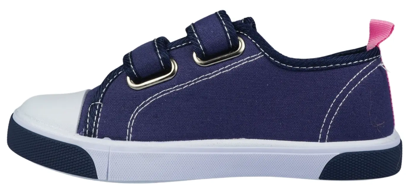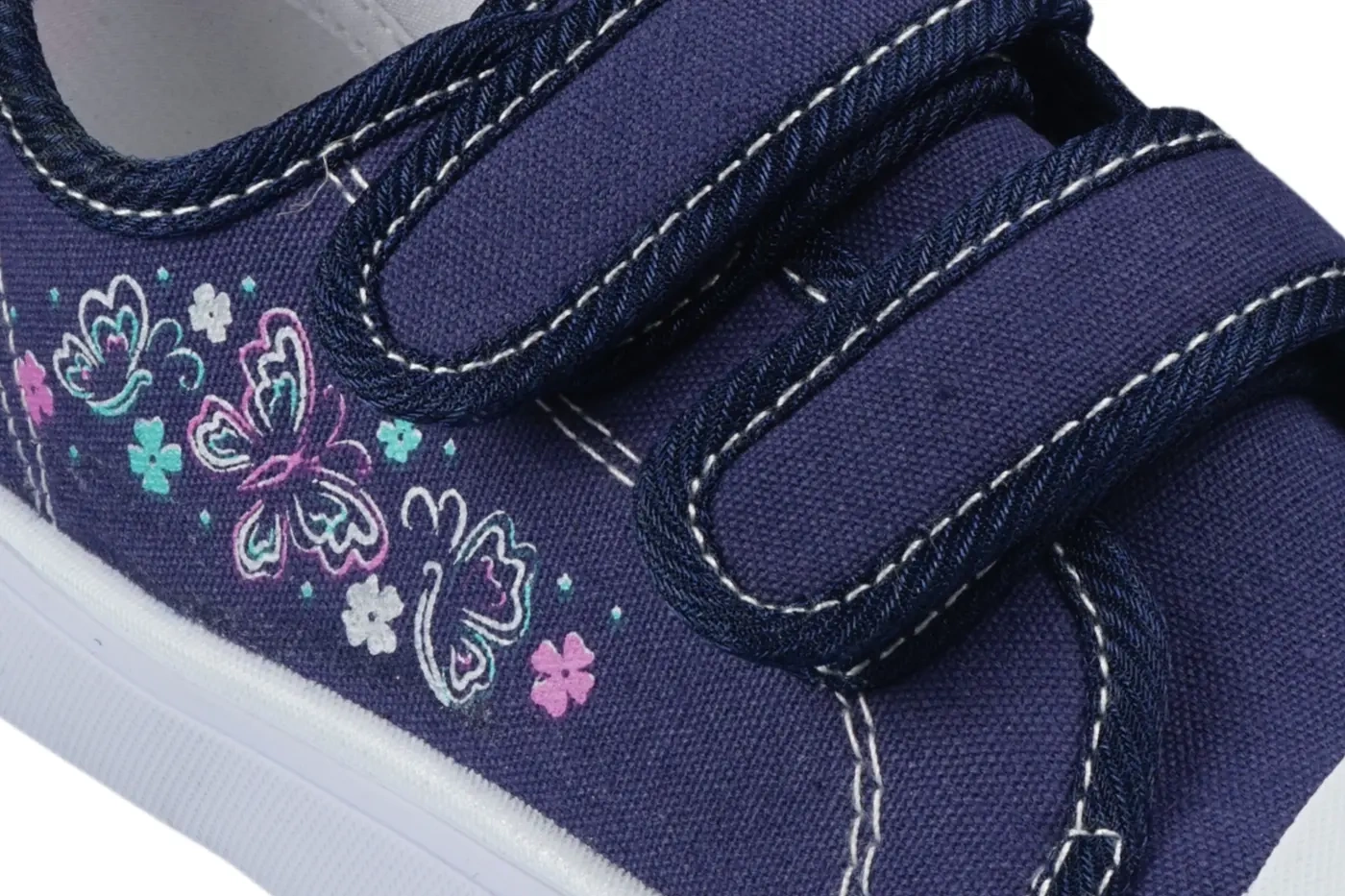 Model utrzymany jest w klasycznym, granatowym kolorze z subtelnymi przeszyciami, które nadają mu charakter. Gumowe zabezpieczenie noska zwiększa trwałość i chroni przed przetarciami. To uniwersalna estetyka, która dobrze komponuje się z codziennymi stylizacjami dzieci.