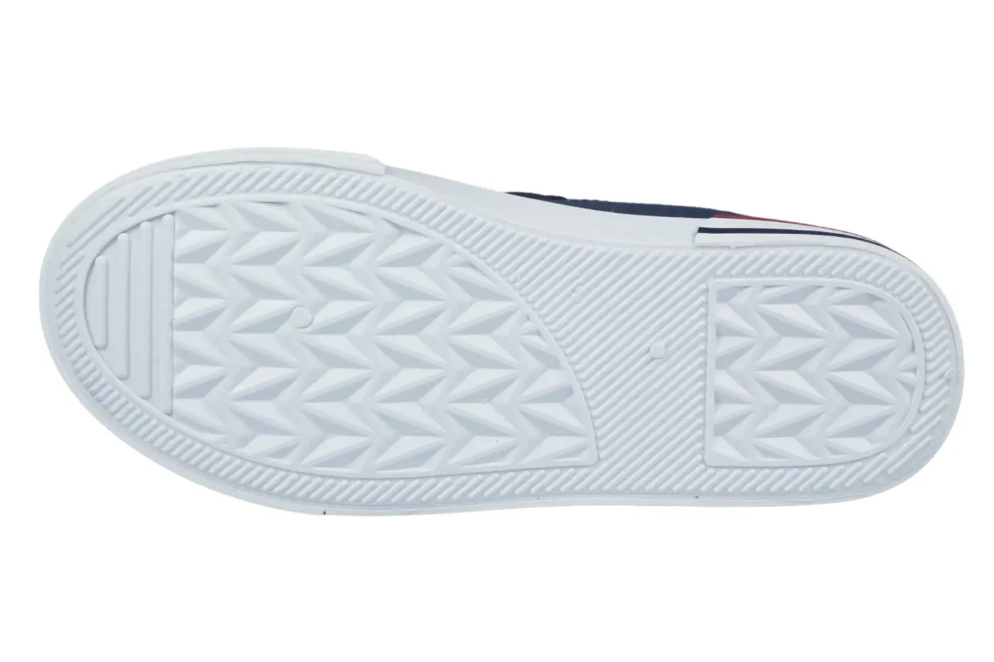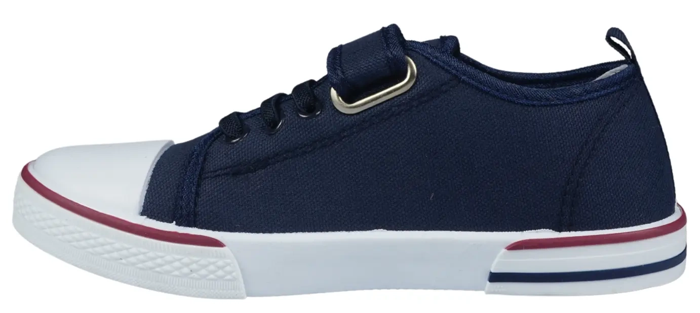 Model utrzymany jest w klasycznym, granatowym kolorze z subtelnymi przeszyciami, które nadają mu charakter. Gumowe zabezpieczenie noska zwiększa trwałość i chroni przed przetarciami. To uniwersalna estetyka, która dobrze komponuje się z codziennymi stylizacjami dzieci.
