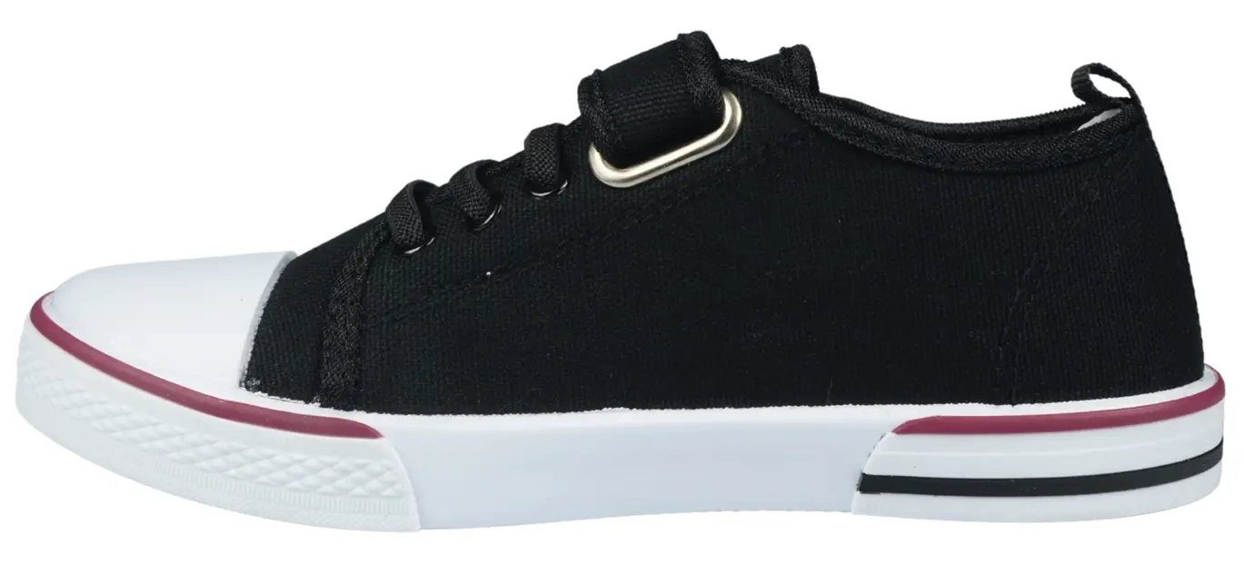 Model utrzymany jest w klasycznym, czarnym kolorze z subtelnymi przeszyciami, które nadają mu charakter. Gumowe zabezpieczenie noska zwiększa trwałość i chroni przed przetarciami. To uniwersalna estetyka, która dobrze komponuje się z codziennymi stylizacjami dzieci.