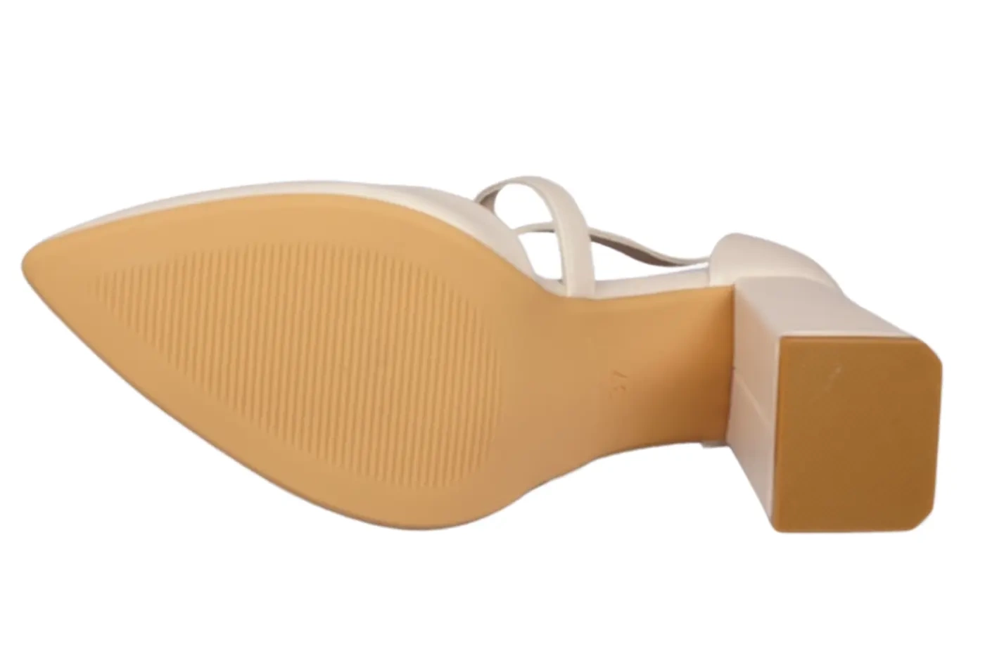 Połyskujące wykończenie beżowej cholewki dodaje elegancji bez przesady. Zamknięty nosek to nie tylko detal estetyczny, ale też praktyczny – chroni palce i nadaje butom bardziej klasyczny charakter. Kształt obcasa subtelnie wydłuża sylwetkę, pozostając wygodną alternatywą dla szpilek.