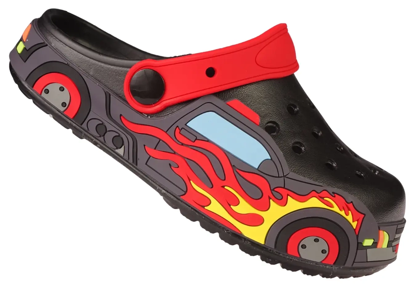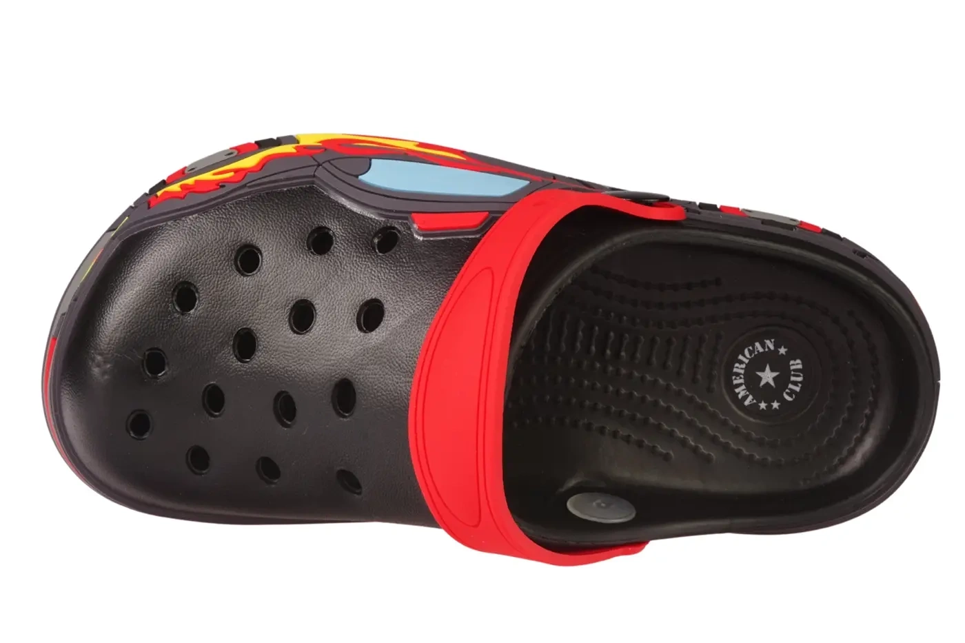 Dziecięce klapki basenowe firmy American Club w kolorze czarno czerwonym. Wykonane w bardzo ciekawym i ładnym stylu w całości z pianki, co sprawia że są one niesamowicie lekkie wygodne i przyjazne dla skóry. Piankowe klapki posiadają dookoła grafikę samochodu. Model ten to doskonały wybór obuwia letniego do zabawy na plaży lub do użytku codziennego. Ich piankowa, bieżnikowana podeszwa zapewni stabilność i zapobiegnie ślizganiu. Model ten wyposażony został w pasek, który trzyma piętę. Dziurki na całej powierzchni zapewniają odpowiednią wentylacje. Dzieci pokochają te wygodne i stylowe klapki na całe lato! Jakość wykonania marki American Club gwarantuje trwałość oraz odporność na warunki atmosferyczne. Idealne na plażę, basen czy po prostu do noszenia na co dzień. Postaw na wygodę i bezpieczeństwo dla swojego dziecka i wybierz klapki basenowe American Club!