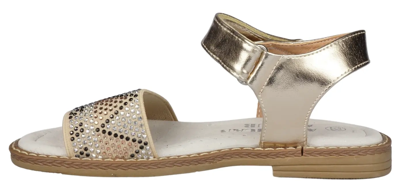 Sandały dziecięce American Club BGC08/20 to funkcjonalne obuwie codzienne przeznaczone na sezon letni. Wykonane z wysokiej jakości skóry ekologicznej oraz elastycznego materiału tekstylnego, zapewniają komfort noszenia i dobre dopasowanie do stopy. Złota kolorystyka dodaje całości subtelnego, dziewczęcego charakteru.