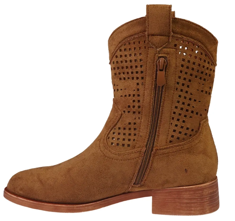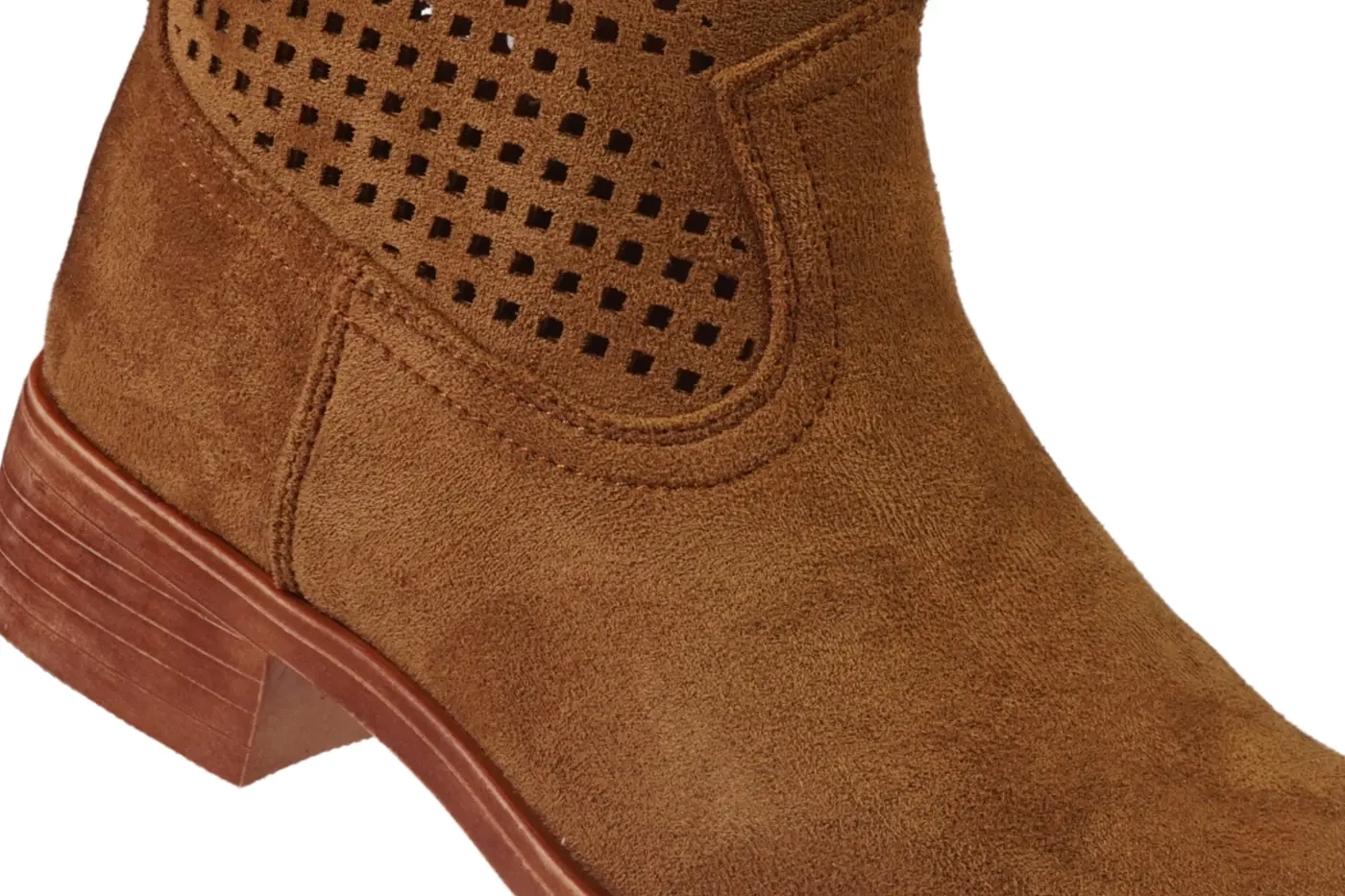 - Obuwie damskie zostało wykonane z wysokiej jakości skóry ekologicznej zamszowej w modnym, ciekawym i eleganckim stylu. Botki mają obcas o wysokości 3,5 cm, który dzięki chropowatemu wykończeniu zapobiega poślizgowi.