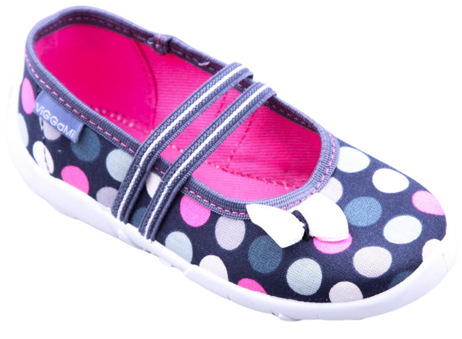 - Tenisówki dziecięce Viggami w szarym kolorze z ciekawym wzorkiem i kokardką. Kapcie są wsuwane co znacznie ułatwia samodzielne zakładanie obuwia przez dziecko. Posiadają certyfikat zdrowej stopy.