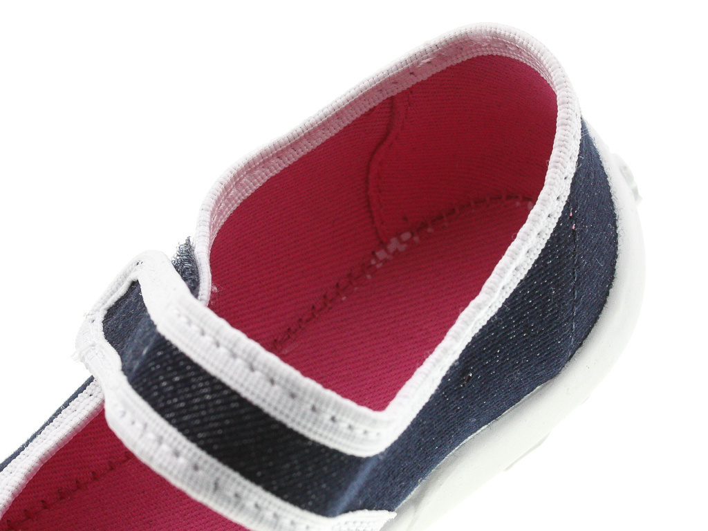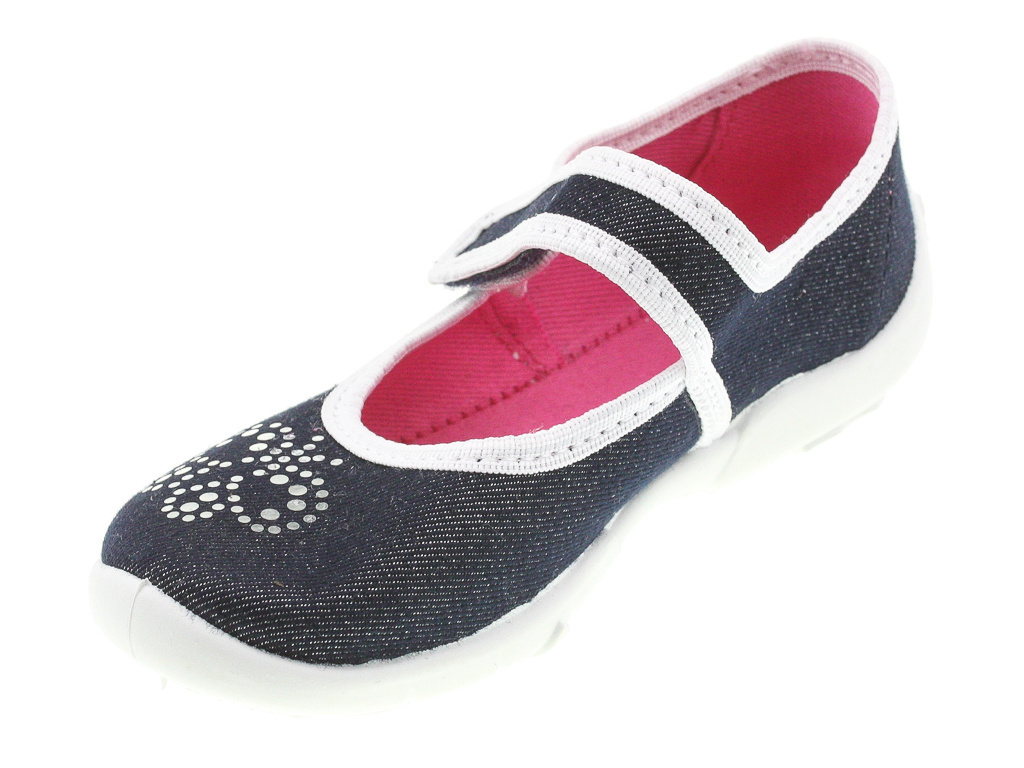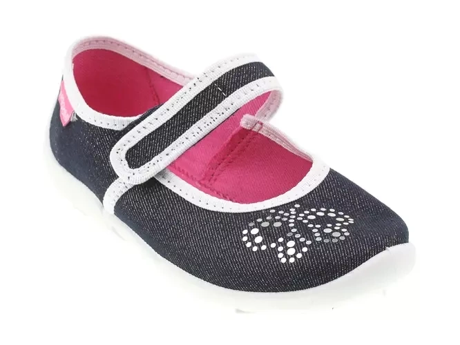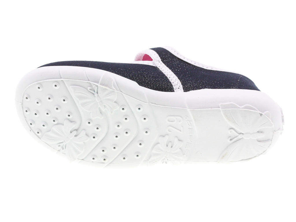 • Tenisówki dziecięce Viggami w granatowym kolorze, ozdobione motylkiem. Kapcie dziecięce są zapinanie na rzep co znacznie ułatwia samodzielne zakładanie obuwia przez dziecko. Posiadają certyfikat zdrowej stopy.