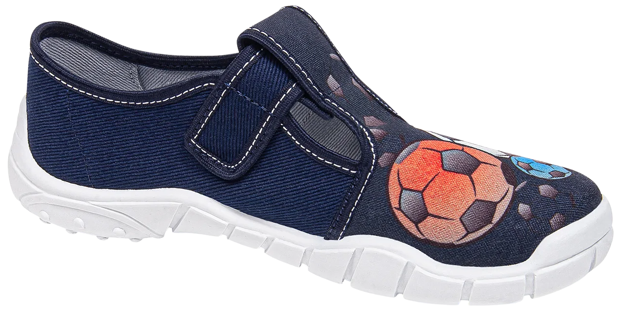 Tenisówki dziecięce Viggami w granatowym kolorze z wzorem w kolorowe piłki. Posiadają elastyczną antypoślizgową podeszwę która jest wentylowana od spodu, zapewnia ona wygodę, i bezpieczeństwo naszych pociech. Kapcie są zapinanie na rzep co znacznie ułatwia samodzielne zakładanie obuwia przez dziecko oraz zapewnia idealne dopasowanie się do stopy. Buciki sprawdzą się do przedszkola jak i harcowania po domu. Produkt jest stworzony w Polsce przez firmę Viggami. Kapcie są lekkie wygodne i mają półotwarte noski co jeszcze bardziej poprawia wentylację, dodatkowo posiadają certyfikat zdrowej stopy który zapewnia , że obuwie wykonane jest prawidłowo pod względem konstrukcyjnym, technologicznym i materiałowym oraz prezentuje się estetycznie. Dzięki niemu Rodzice mają pewność, że stópki ich dzieci są bezpieczne i właściwie się rozwijają.