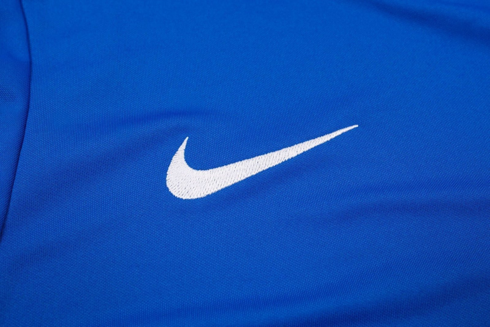 Męska koszulka firmy Nike z kolekcji Park VII dedykowana jest dla aktywnych fizycznie mężczyzn, którzy lubią łączyć wygodę z funkcjonalnością i stylem. Wykonana została w 100% z wysokiej jakości poliestru przez co nie gniecie się i łatwo nie plami, a materiał skonstruowany zgodnie z technologią DRI-FIT pozwoli na dłużej utrzymać komfort użytkowania odprowadzając pot ze skóry i redukując jego ilość. Świetnie nadaje się zarówno na treningi siłowe jak i sportowe, do biegania, jazdy na rowerze czy codziennego użytkowania. Koszulka w kolorze niebieskim posiada wyhaftowane na prawej piersi białe logo Swoosh. Koszulka jest przewiewna i nie krępuje ruchów. Dzięki klasycznemu krojowi dopasowuje się do każdego typu sylwetki. Produkt jest nowy i zaopatrzony w oryginalne metki.