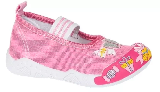 Model w uroczym różowym kolorze ozdobiono delikatnymi przeszyciami. Gumowe wzmocnienie na nosku chroni przed przetarciami i wydłuża trwałość obuwia. Klasyczna forma i pastelowa barwa sprawiają, że buty pasują do wielu dziecięcych stylizacji.