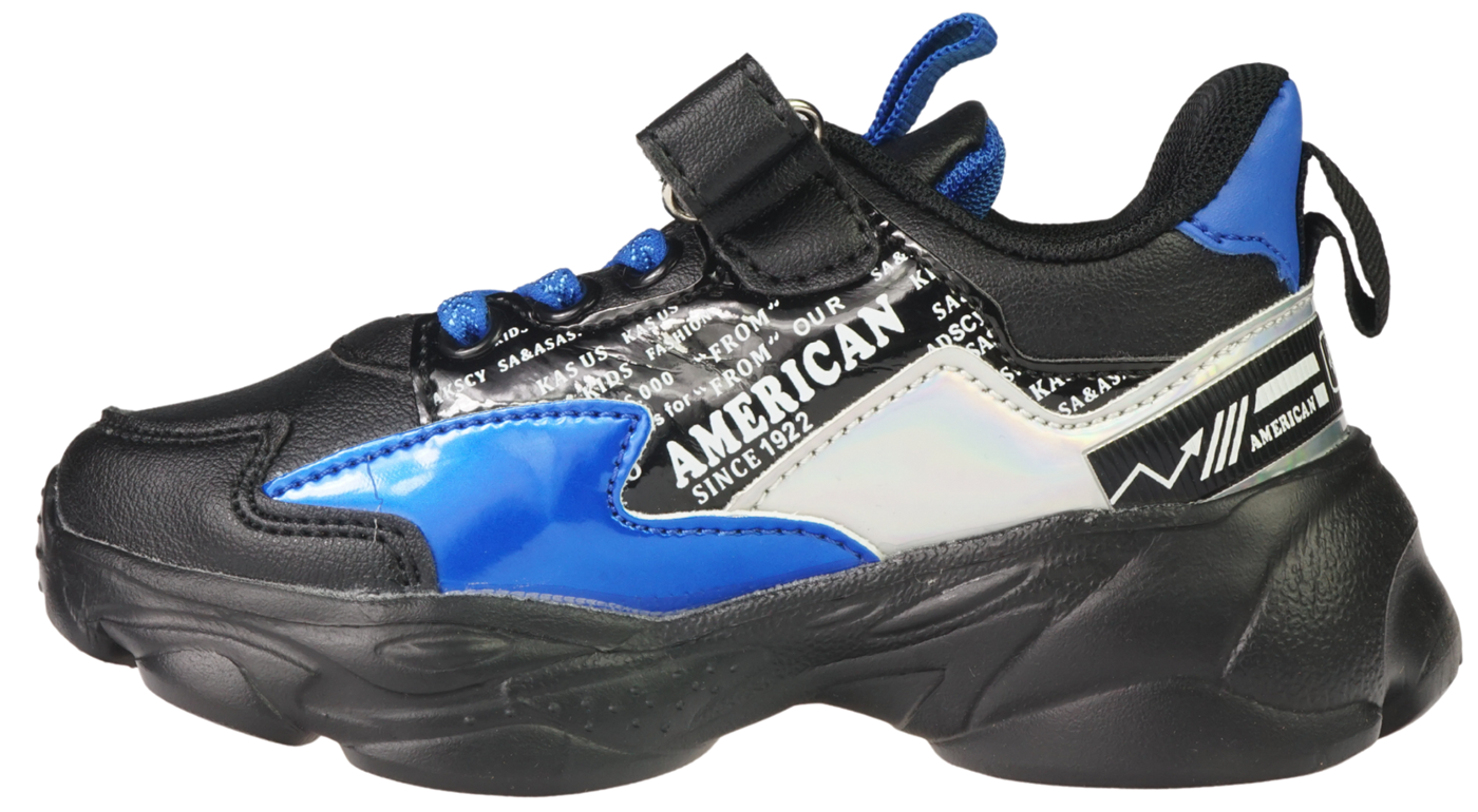 Buty sportowe dziecięce American Club BBD-04BLBU czarne to praktyczne i stylowe obuwie stworzone z myślą o aktywnych dzieciach. Klasyczna czerń przełamana niebieskimi akcentami nadaje butom dynamicznego wyglądu, który doskonale sprawdzi się na co dzień — do szkoły, zabawy czy sportu.