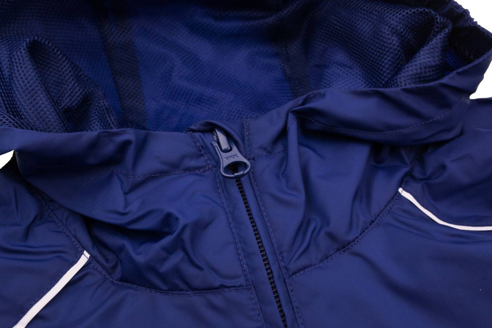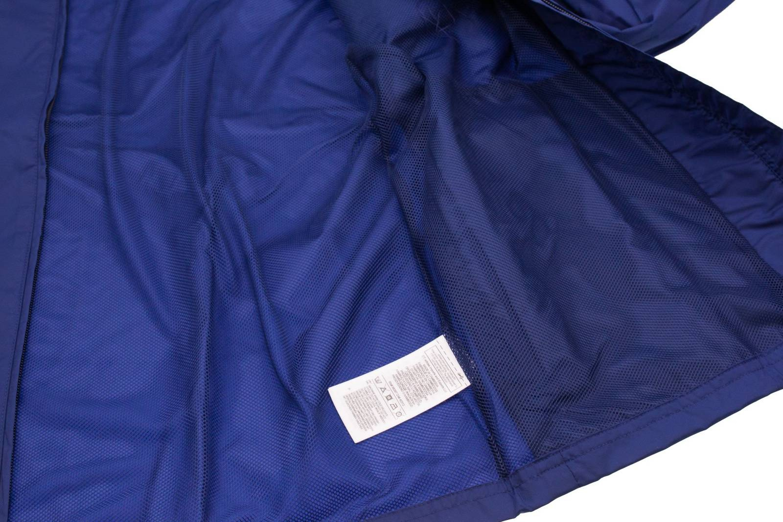 Kurtka przeciwdeszczowa Junior marki Adidas z serii Core 18 idealnie nadaje się na brzydkie deszczowe dni. Wierzchnia warstwa produktu została wykonana w 100% z nylonu, materiału, który nie absorbuje wody chroniąc przy tym ciało przed wilgocią i zamoczeniem, z kolei podszewka z siatki wykonanej w 100% z poliestru zapewnia dobrą izolację termiczną ciała. Kurtka w kolorze granatowym posiada białe nadrukowane na prawej piersi logo. Zadaniem kaptura wyposażonego w gumkę ze ściągaczem jest ochrona przed deszczem, chłodem i wiatrem. Kurtka Adidas posiada zamek błyskawiczny na całej długości. Boczne zapinane kieszenie umożliwiają przechowywanie najpotrzebniejszych drobiazgów przy sobie. Stabilność zapewniają ściągacze na końcach rękawów i w pasie. Białe wstawki w okolicach ramion dodają kurtce stylu. Kurtka Adidas zapewnia komfort użytkowania i maksymalną swobodę ruchu. Produkt jest nowy i posiada oryginalne metki.