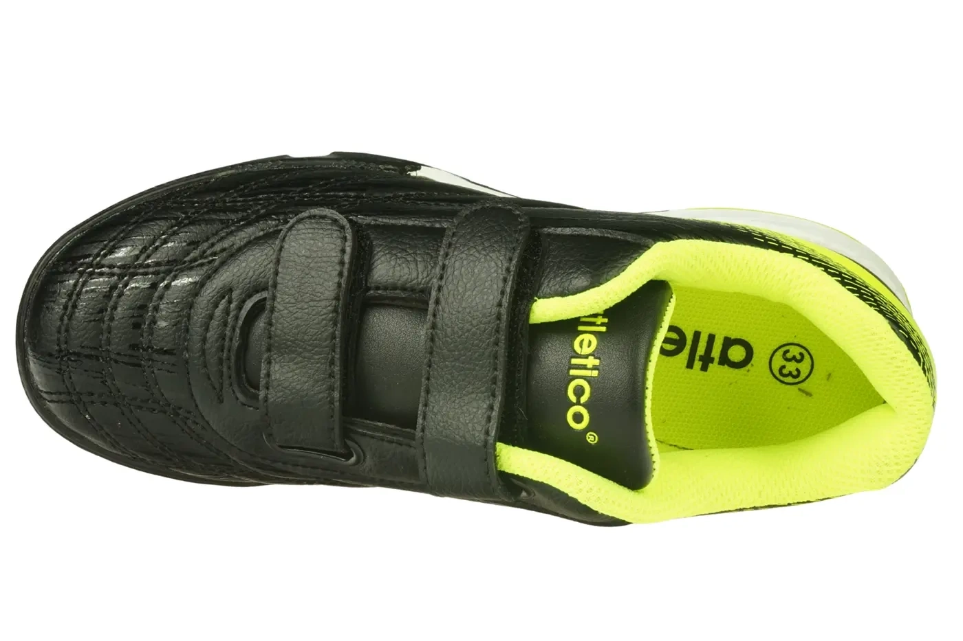 - Dziecięce turfy Atletico w kolorze czarnym to wygodne obuwie sportowe z trwałej skóry ekologicznej. Obuwie sportowe na sztuczną nawierzchnie z miękkiego materiału tekstylnego zapewnia komfort, a gumowa podeszwa gwarantuje stabilność.