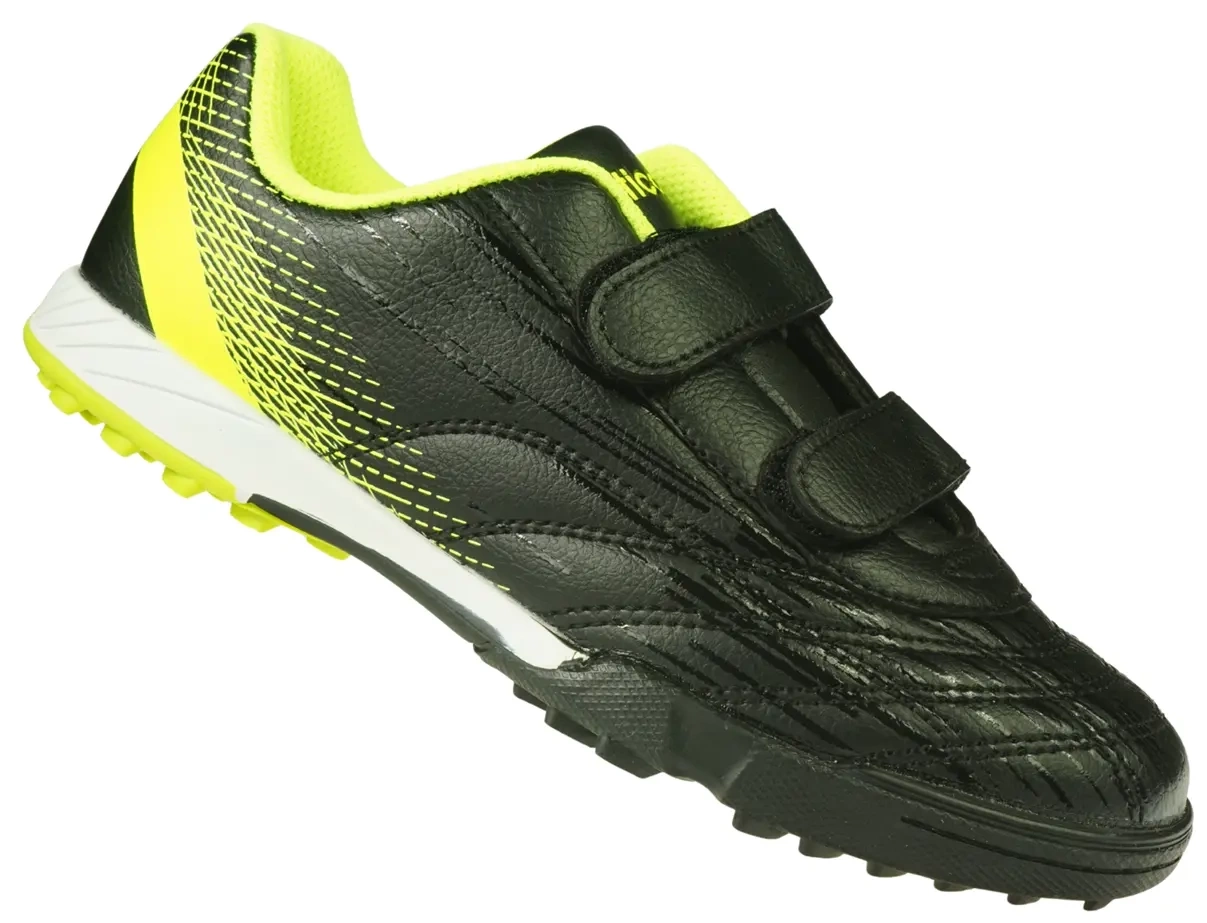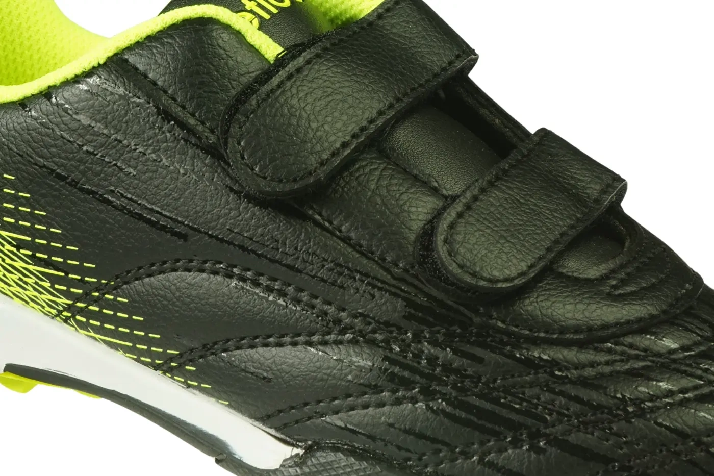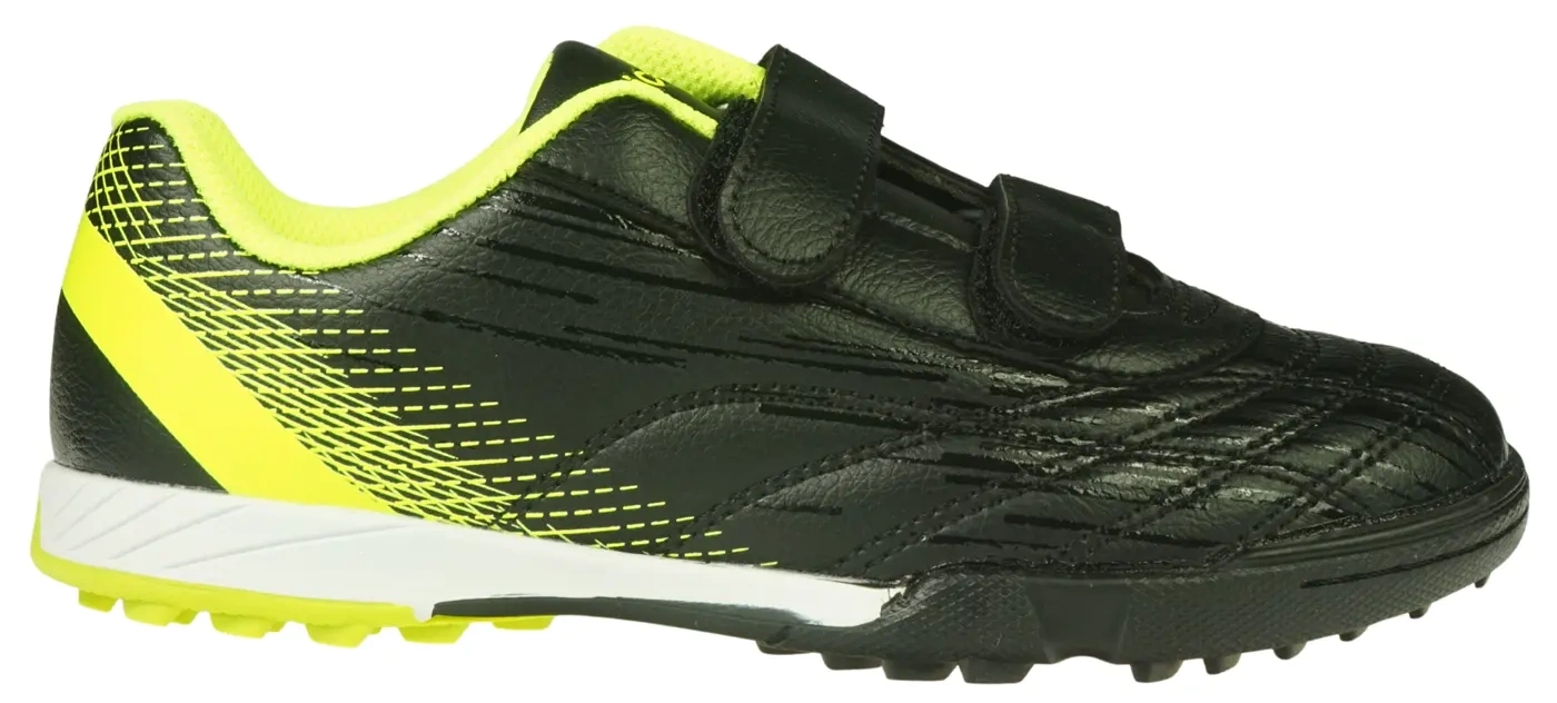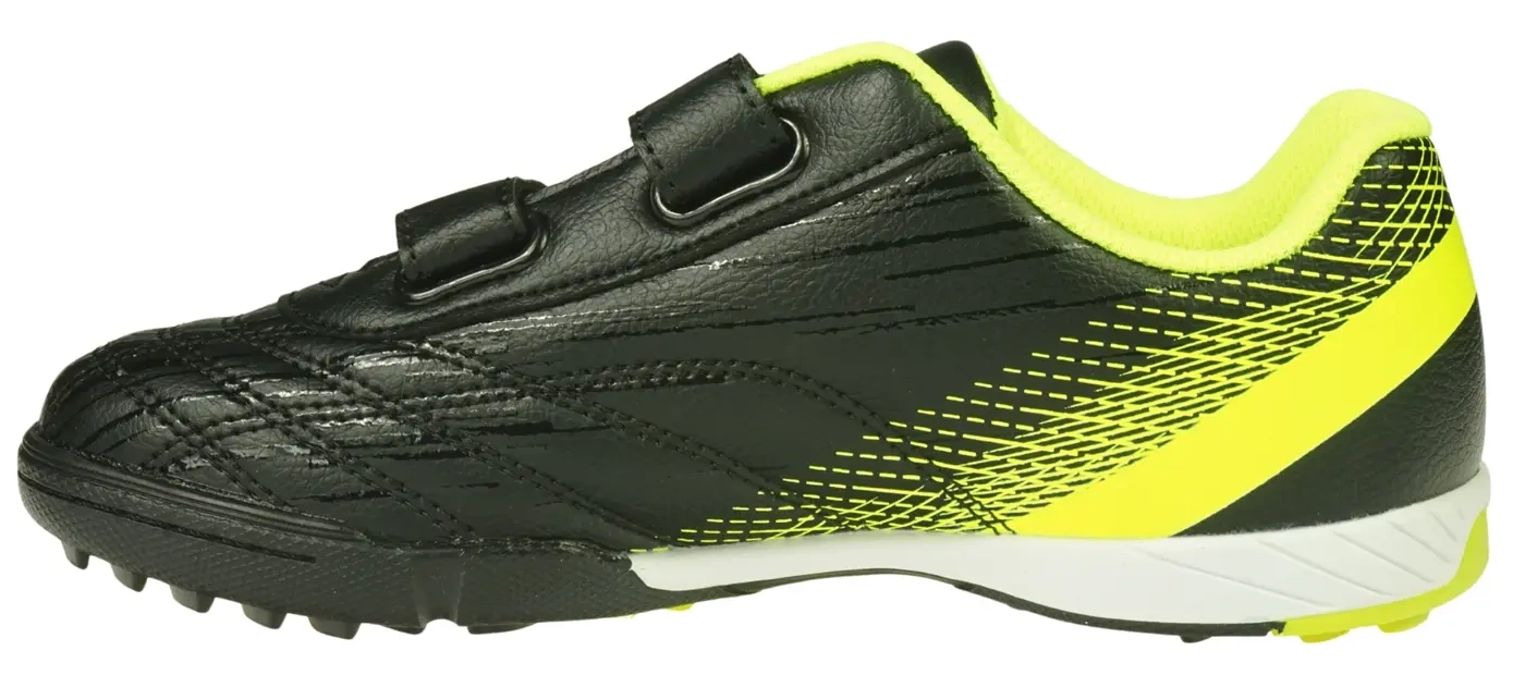 Dziecięce turfy Atletico w kolorze czarnym. Obuwie sportowe wykonane z trwałej skóry ekologicznej. Wewnątrz zastosowano wysokiej jakości, miękki materiał tekstylny. Wszystko to sprawia, że komfort użytkowania tego produktu jest na wysokim poziomie. Podeszwa z bieżnikiem zapobiega ślizganiu się i zapewniają dobrą przyczepność do podłoża, buty są przeznaczone na sztuczne nawierzchnie trawiaste - orliki. Dużą zaletą czarnych turfów sportowych są dopasowanie do stopy oraz wykończenie - buty są wykonane bardzo ergonomicznie co zapewnia komfort nawet przy bardzo dynamicznym poruszaniu się. Sportowe buty na orlik od firmy Atletico posiadają wzmocnioną piętę. Turfy z firmy Atletico są znane ze swojej wyjątkowej wytrzymałości, co sprawia, że doskonale sprawdza się podczas intensywnych treningów. Rzepy umożliwiają szybkie i łatwe zakładanie i idealne dopasowanie do stopy, co gwarantuje stabilność i pewność ruchu. Buty posiadają miękką wyściółkę oraz wygodną wkładkę tekstylną. Wybierając obuwie na orlik nie możesz pominąć tego modelu.