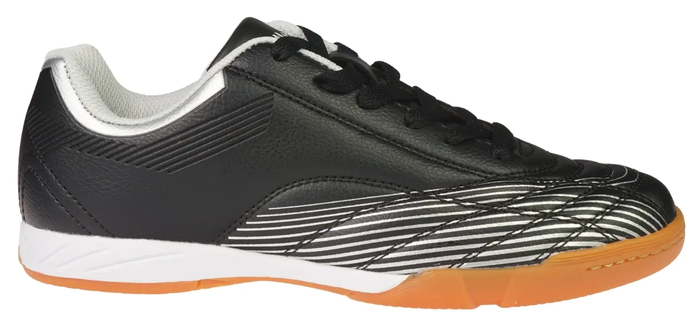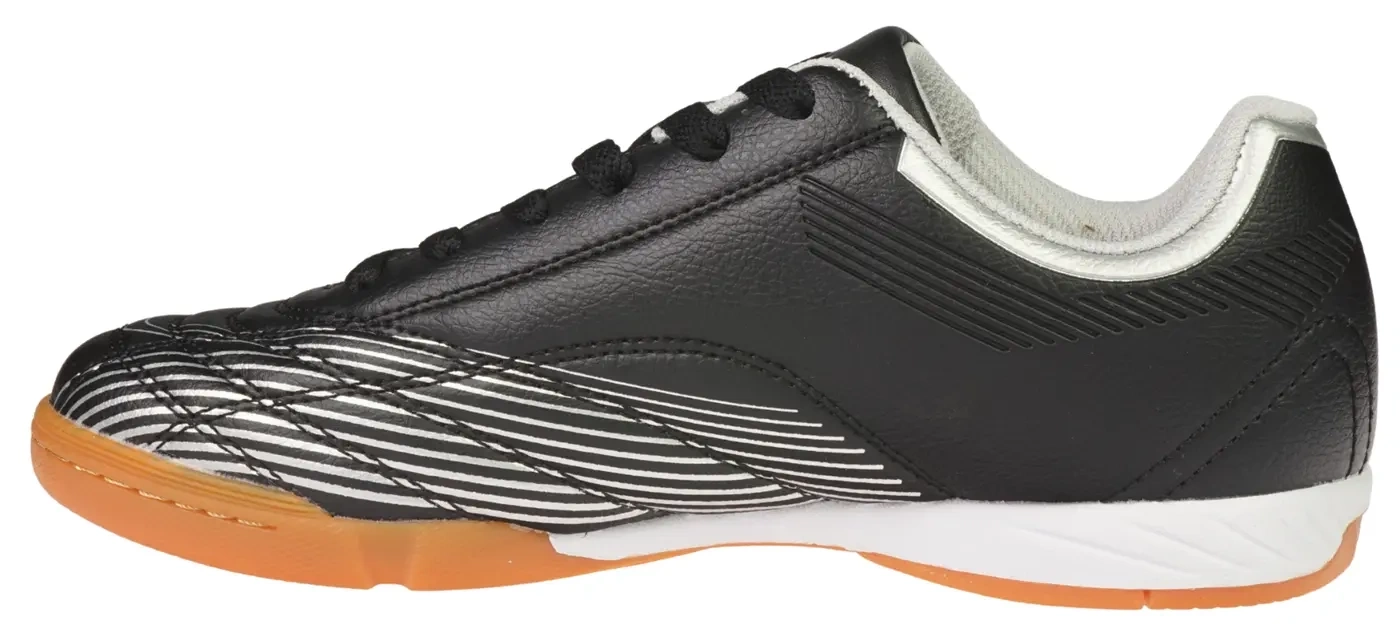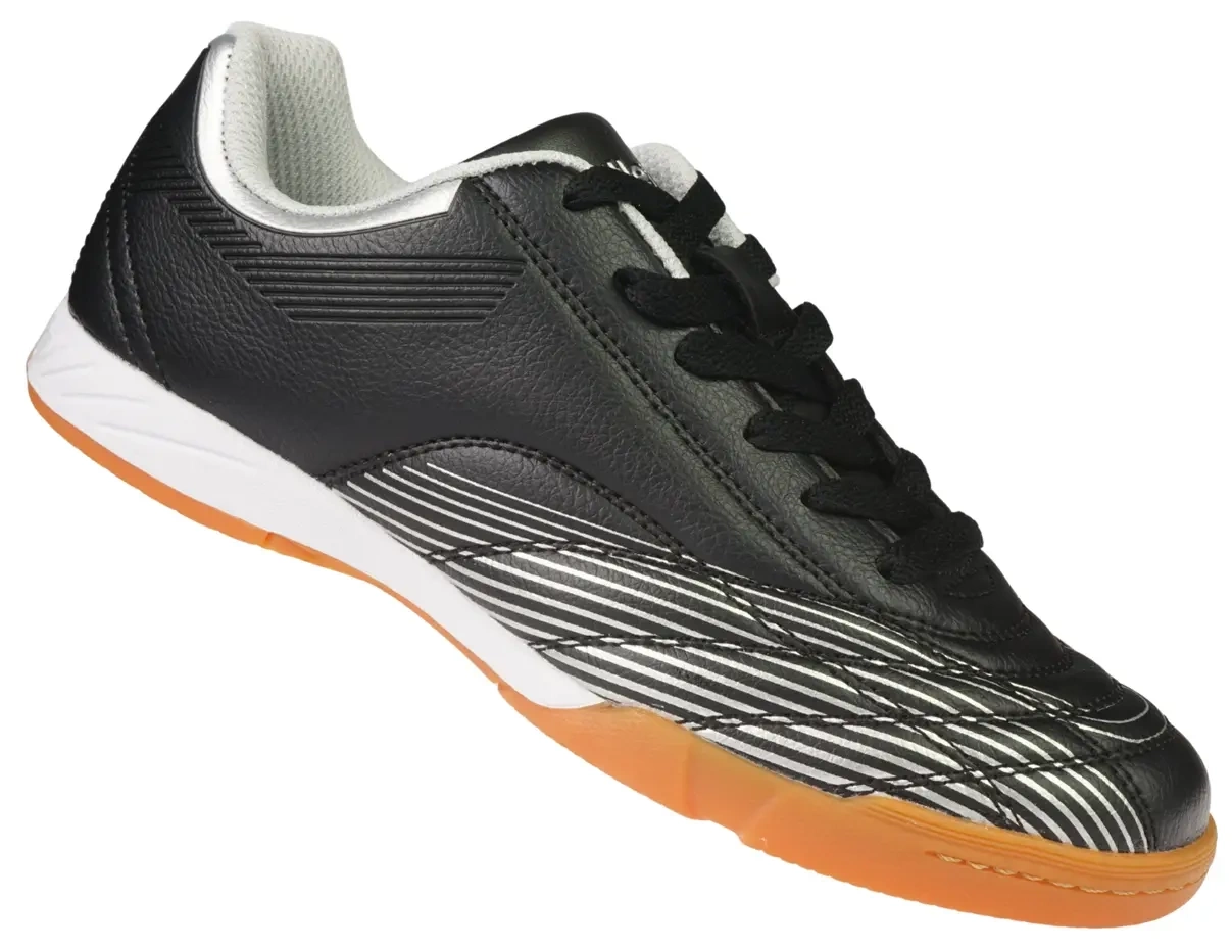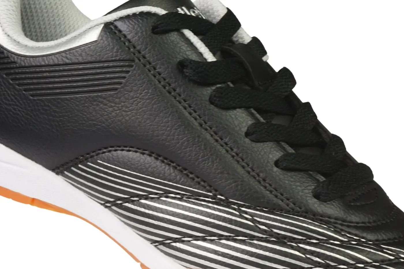 - Męskie obuwie halowe w kolorze czarnym z dodatkiem szarego wykonane z wysokiej jakości materiałów. Gumowa podeszwa zapobiega ślizganiu się, a sznurówki pozwalają na idealne dopasowanie. Cholewka ze skóry ekologicznej zapewnia wygodę.