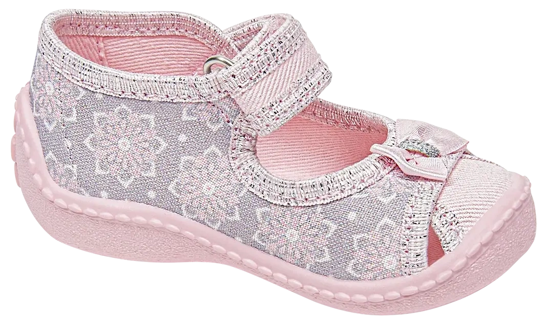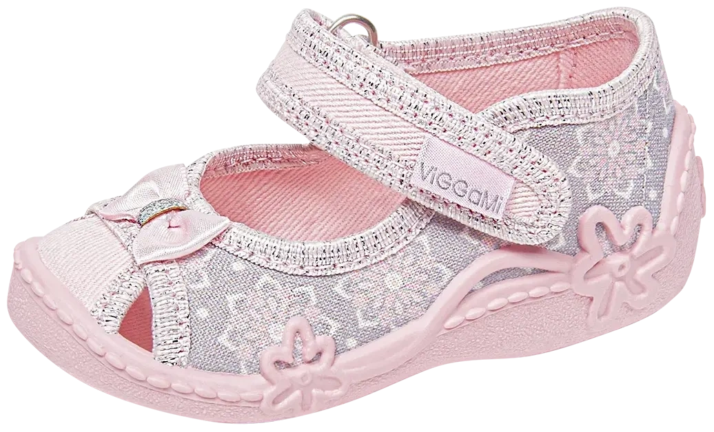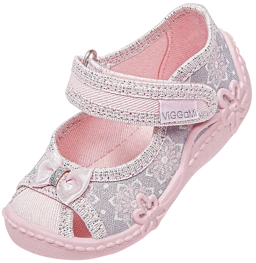 - Tenisówki dziecięce Viggami w różowym kolorze z ciekawym wzorkiem i kokardką. Kapcie są zapinanie na rzep co znacznie ułatwia samodzielne zakładanie obuwia przez dziecko. Posiadają certyfikat zdrowej stopy.