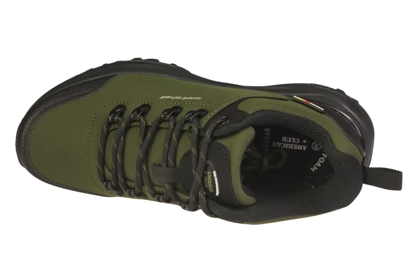 - Męskie buty sportowe American Club z SoftShell w kolorze khaki. Oddychające, wodoodporne, z wkładką Memory Foam i gumową podeszwą z bieżnikiem. Lekkie, wygodne i idealne na wędrówki, spacery oraz codzienną aktywność.