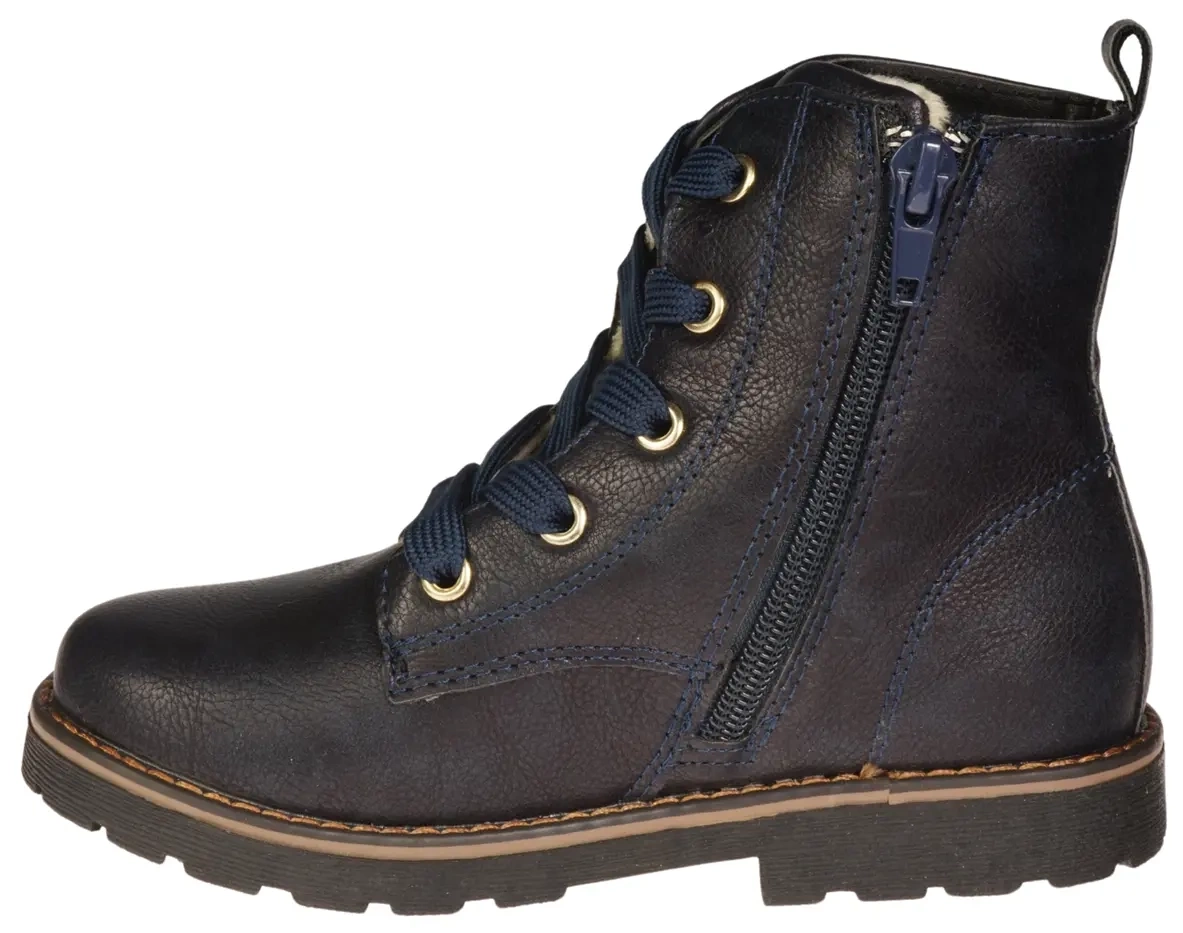 - Granatowe, ocieplane trzewiki zimowe American Club dla dzieci. Wykonane ze skóry ekologicznej, z grubą podeszwą i kożuchem w środku. Sznurowane z suwakiem – wygodne, ciepłe i idealne na zimowe dni w każdej stylizacji.
