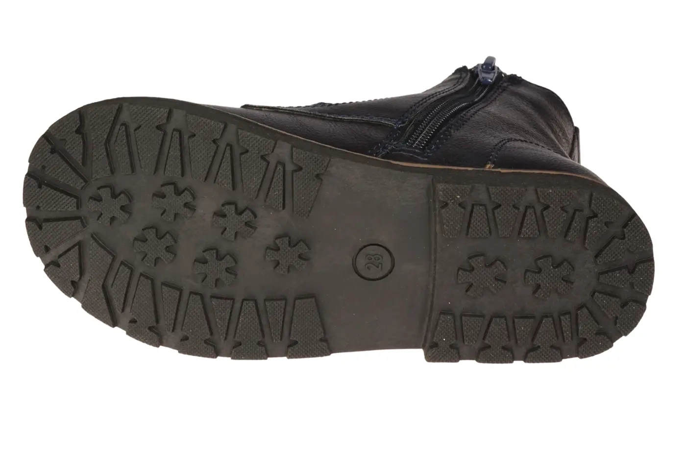 Granatowe trzewiki zimowe marki American Club to praktyczne i stylowe obuwie dla dzieci, idealne na chłodne dni. Wysoka cholewka i masywna, gumowa podeszwa z wyraźnym bieżnikiem inspirowane są stylem glanów, co nadaje butom charakteru i nowoczesnego wyglądu.