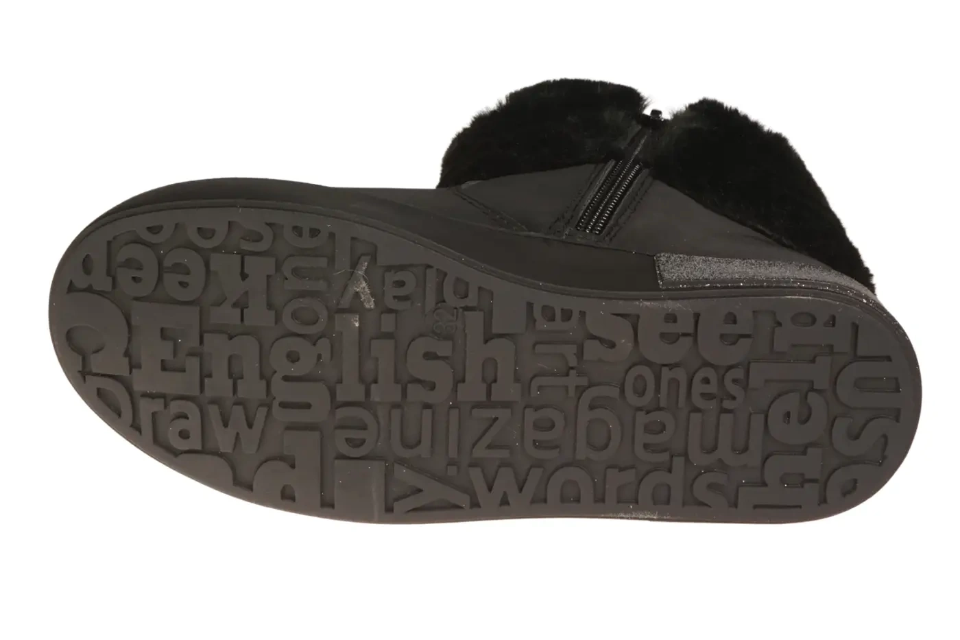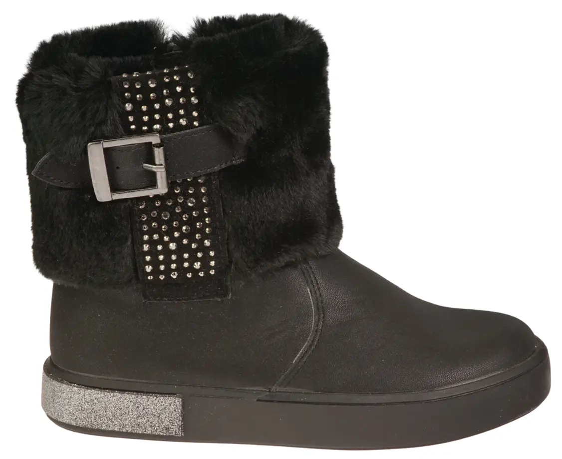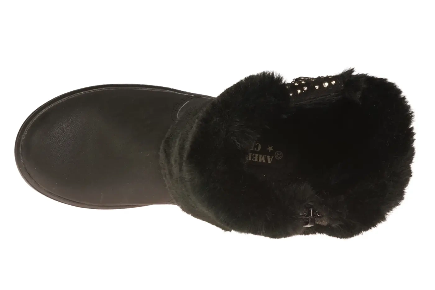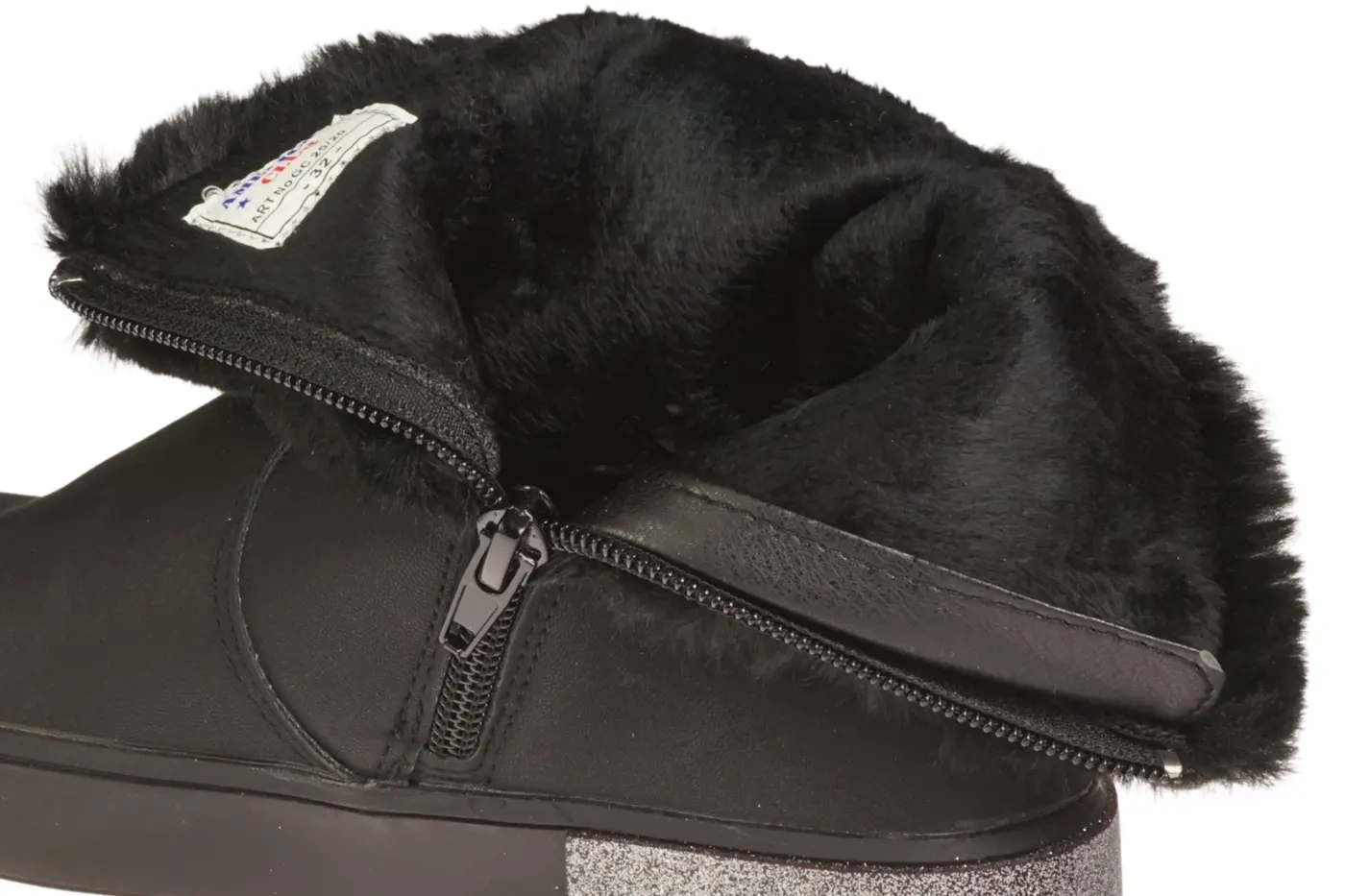 Wnętrze butów wypełnia ciepły kożuch, a miękka futerkowa wkładka dodatkowo podnosi komfort użytkowania. Cholewka z łatwej do czyszczenia skóry ekologicznej z futrzanym obszyciem wokół kostki dodaje stylu i chroni przed zimnem. Zapięcie na wygodny zamek ułatwia szybkie zakładanie i zdejmowanie butów.