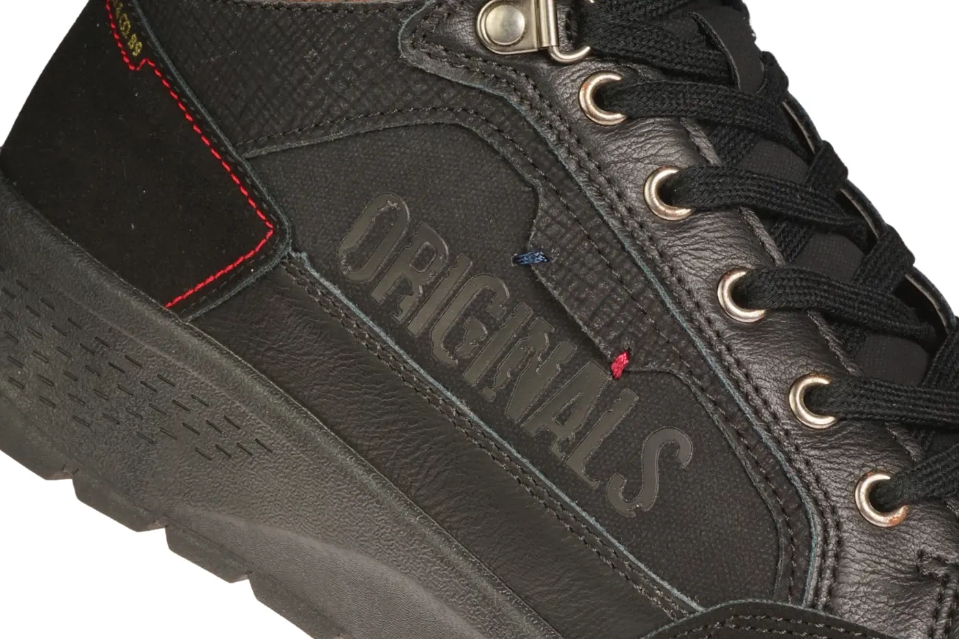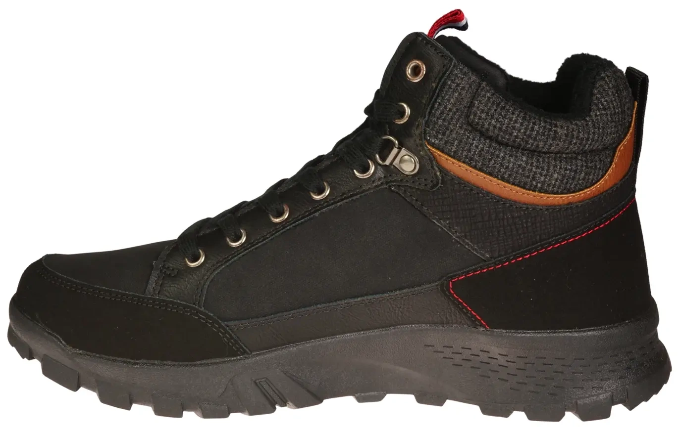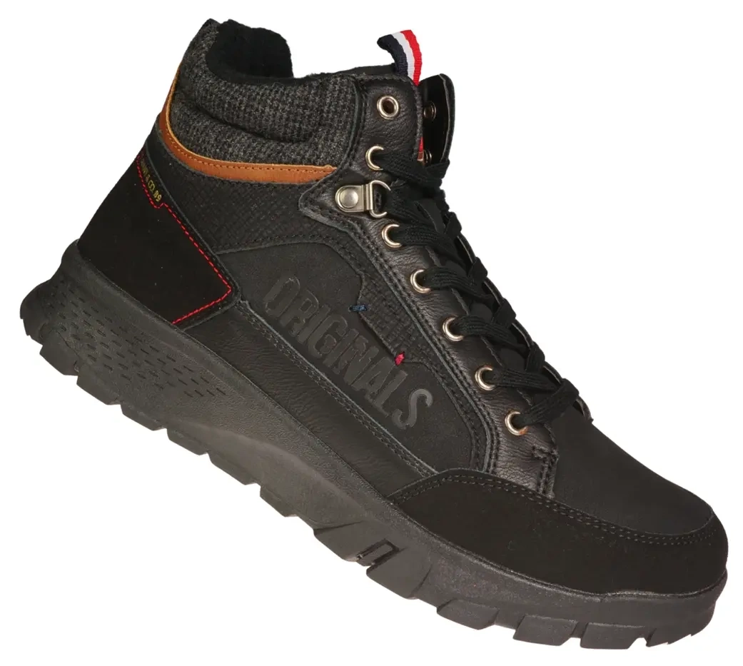Męskie buty przejściowe American Club w klasycznym czarnym kolorze to połączenie wygody, trwałości i stylowego designu. Wysoka cholewka z trwałego tworzywa zapewnia ochronę przed wilgocią i wiatrem, a ozdobne przeszycia podkreślają nowoczesny, męski charakter obuwia.
