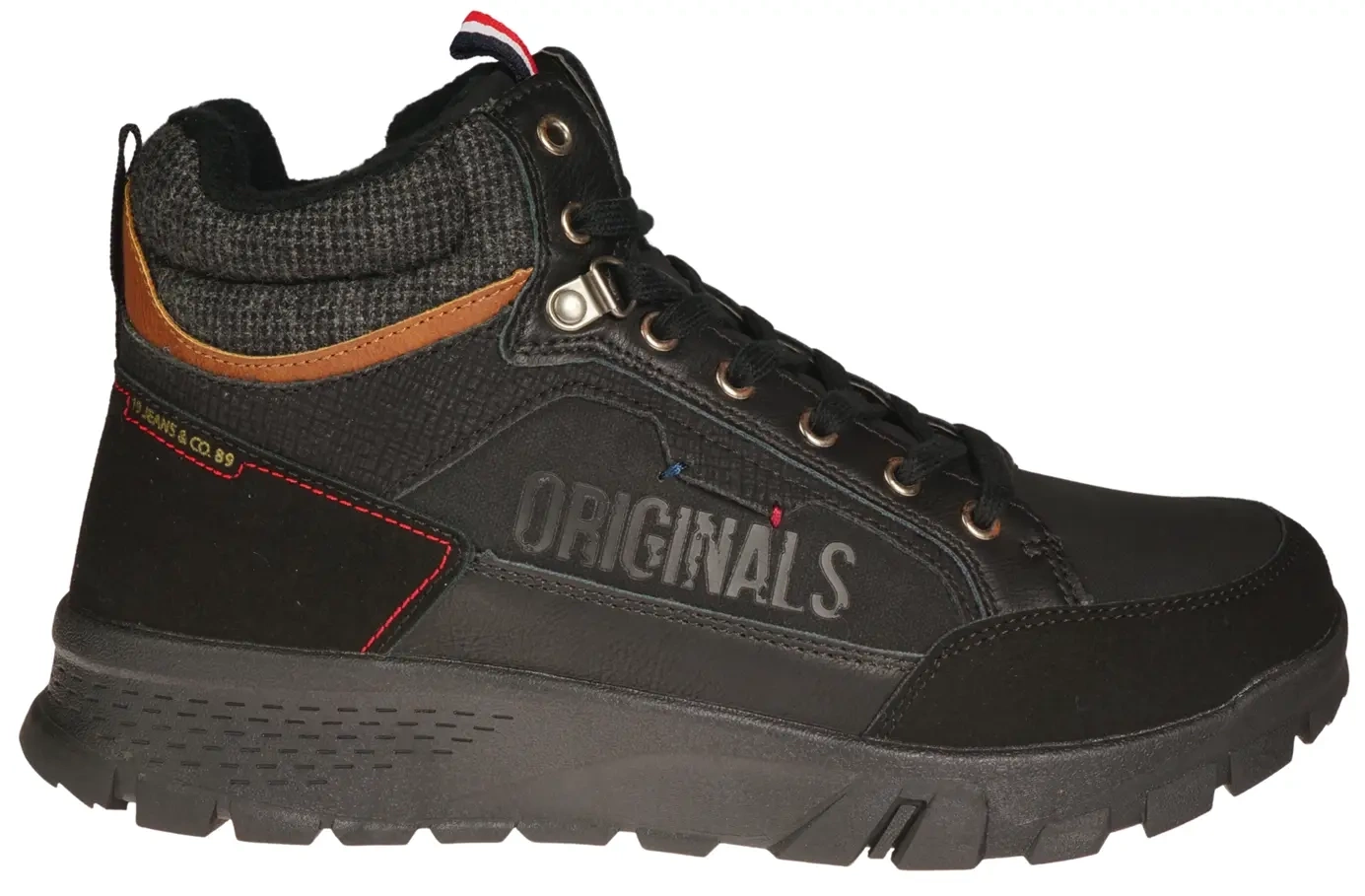 Model za kostkę wyposażony jest w sznurowanie, które umożliwia idealne dopasowanie do stopy. Wnętrze ocieplone zostało polarem oraz wkładka wykonane z miękkiego materiału tekstylnego zapewniają komfort noszenia na co dzień. Gruba gumowa podeszwa z bieżnikiem gwarantuje stabilność i przyczepność na różnych nawierzchniach.