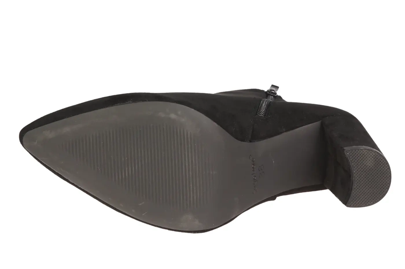 Solidny słupek zapewnia stabilność i wygodę noszenia przez cały dzień, niezależnie od aktywności. Zamek błyskawiczny umieszczony po wewnętrznej stronie ułatwia szybkie zakładanie i zdejmowanie butów. Klasyczny migdałowy nosek optycznie wysmukla nogi, nadając butom ponadczasowy charakter.