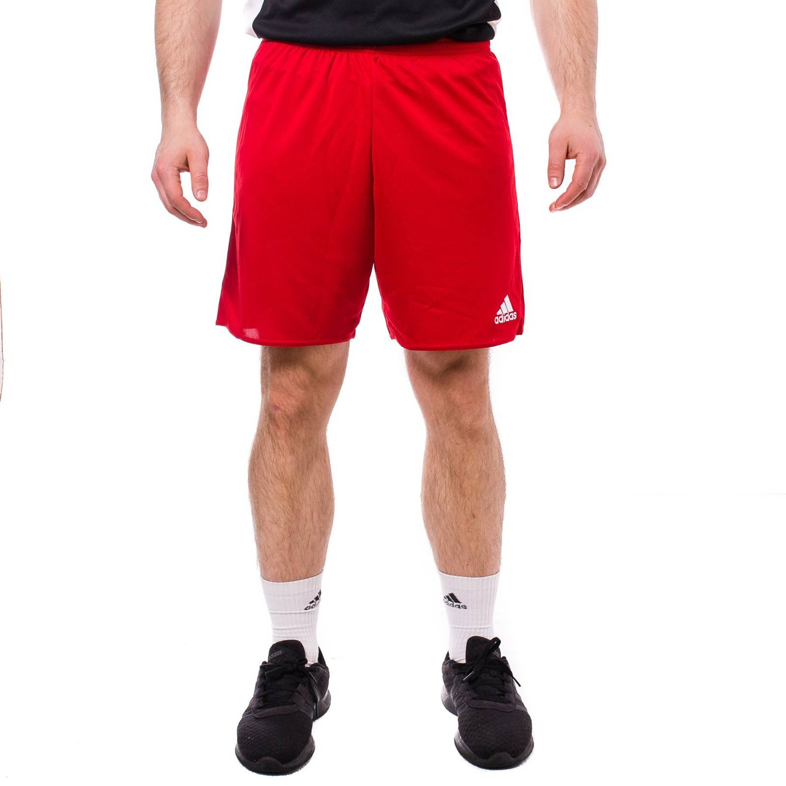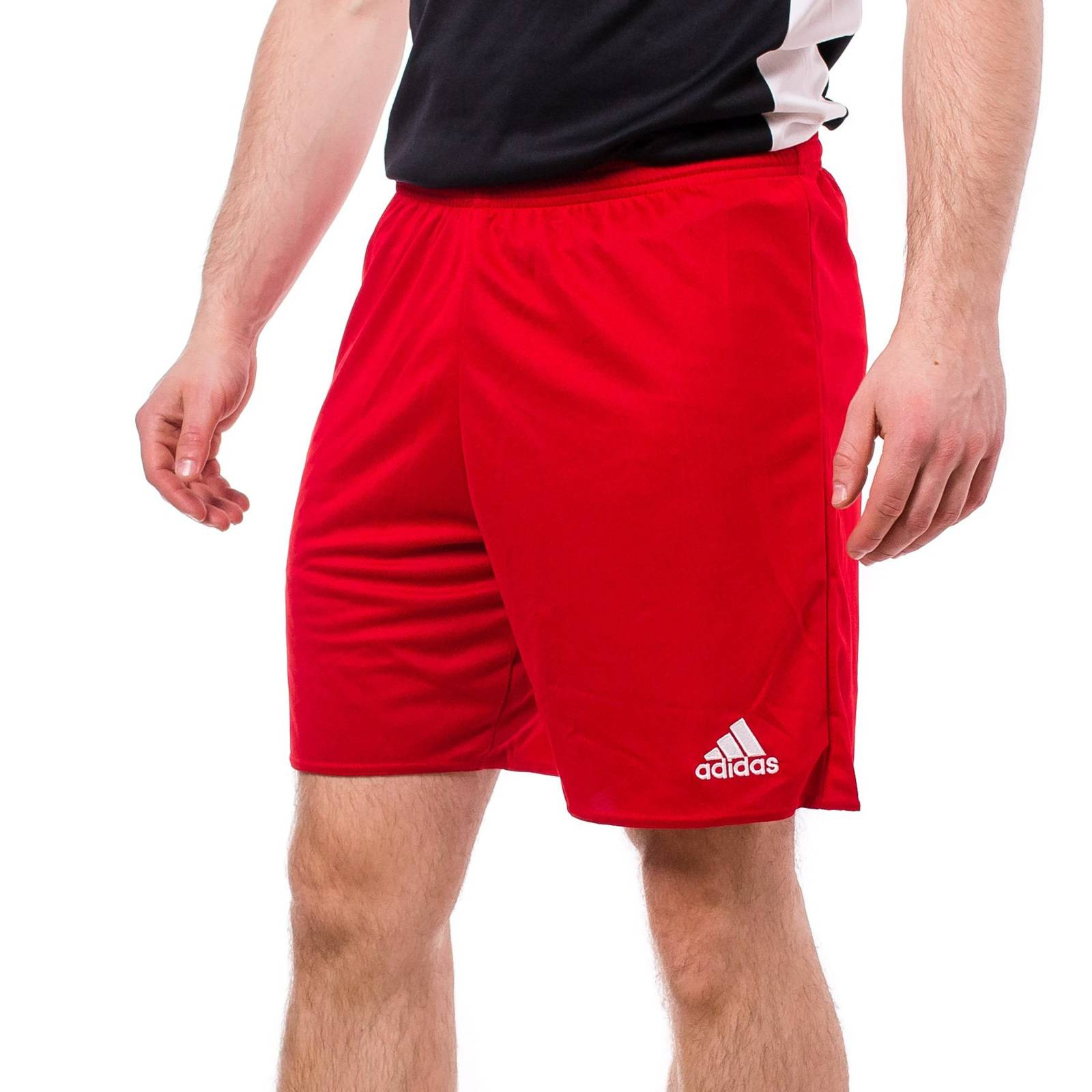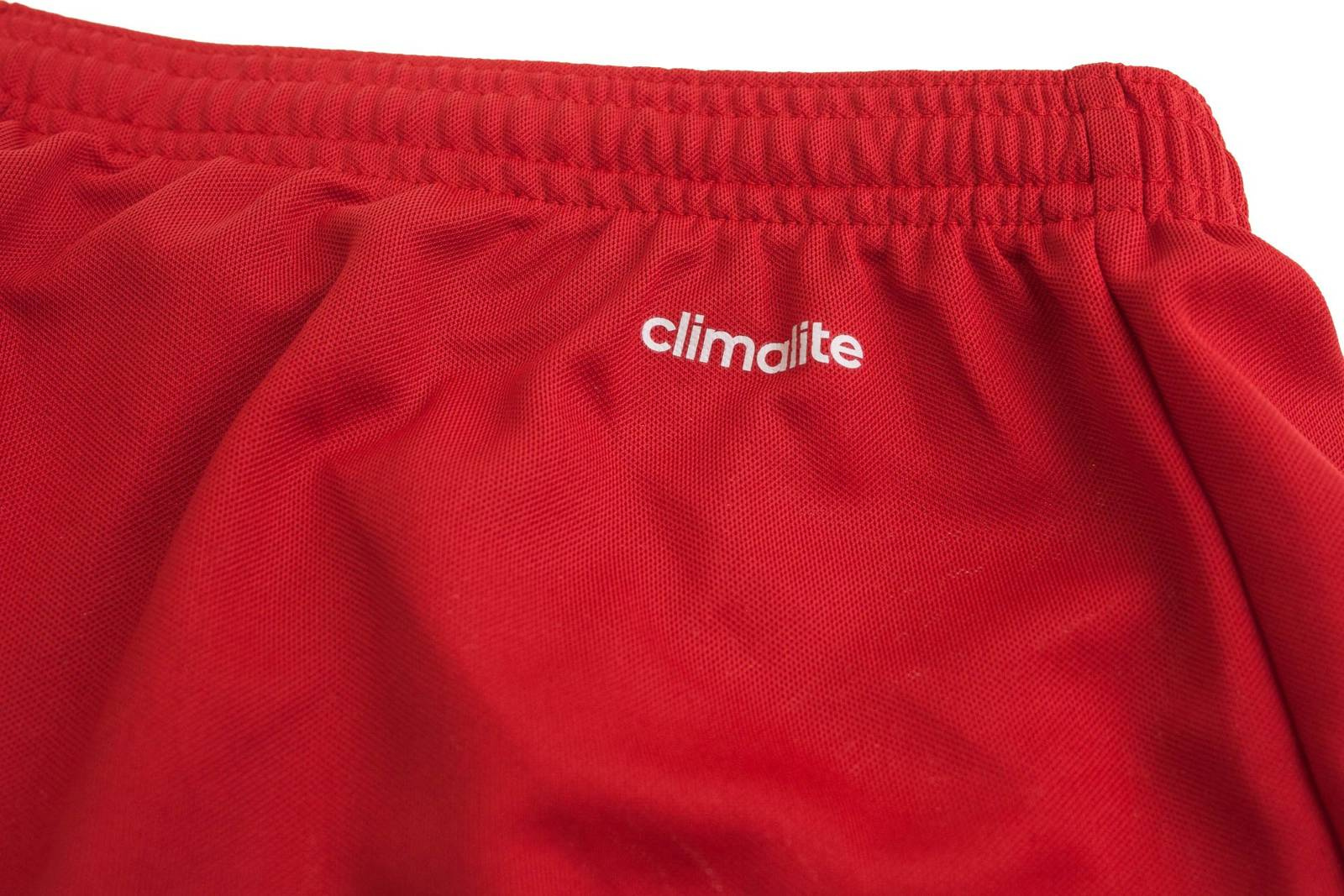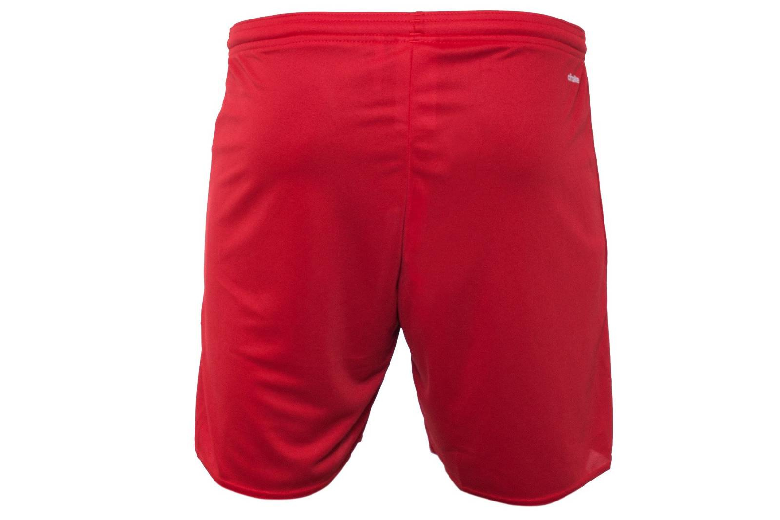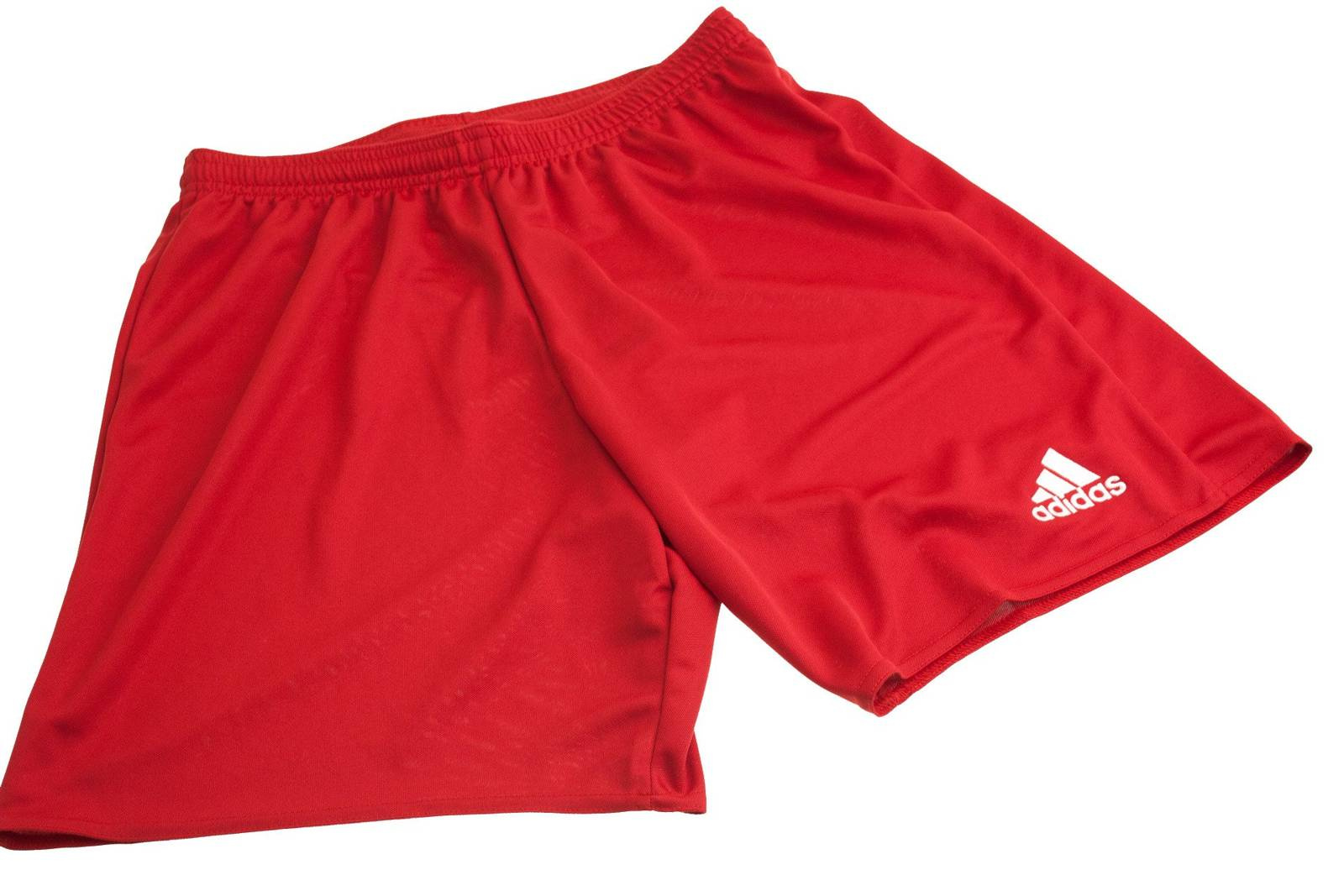 Krótkie spodenki męskie firmy Adidas z kolekcji Parma 16 w kolorze czerwonym stworzone zostały dla aktywnych fizycznie mężczyzn spędzających dużo czasu na boisku. Wykonane zostały w 100% z najwyższej jakości poliestru wyposażonego w technologię Climalite, dzięki której pot zostaje odprowadzany na zewnątrz materiału zapewniając skórze suchość i komfort podczas użytkowania, są przewiewne, wygodne i gwarantują maksimum swobody ruchu. Doskonale nadają się na treningi, szczególnie sportowe, ale także do biegania, jeżdżenia na rowerze, ale również jako element codziennej stylizacji. Krótkie spodenki w kolorze czerwonym posiada wyhaftowane białe logo znajdujące się na lewej nogawce. Spodenki nie posiadają kieszeni. Stabilność zapewnia ściągacz z gumką w pasie.Produkt jest nowy i zaopatrzony w oryginalne metki.