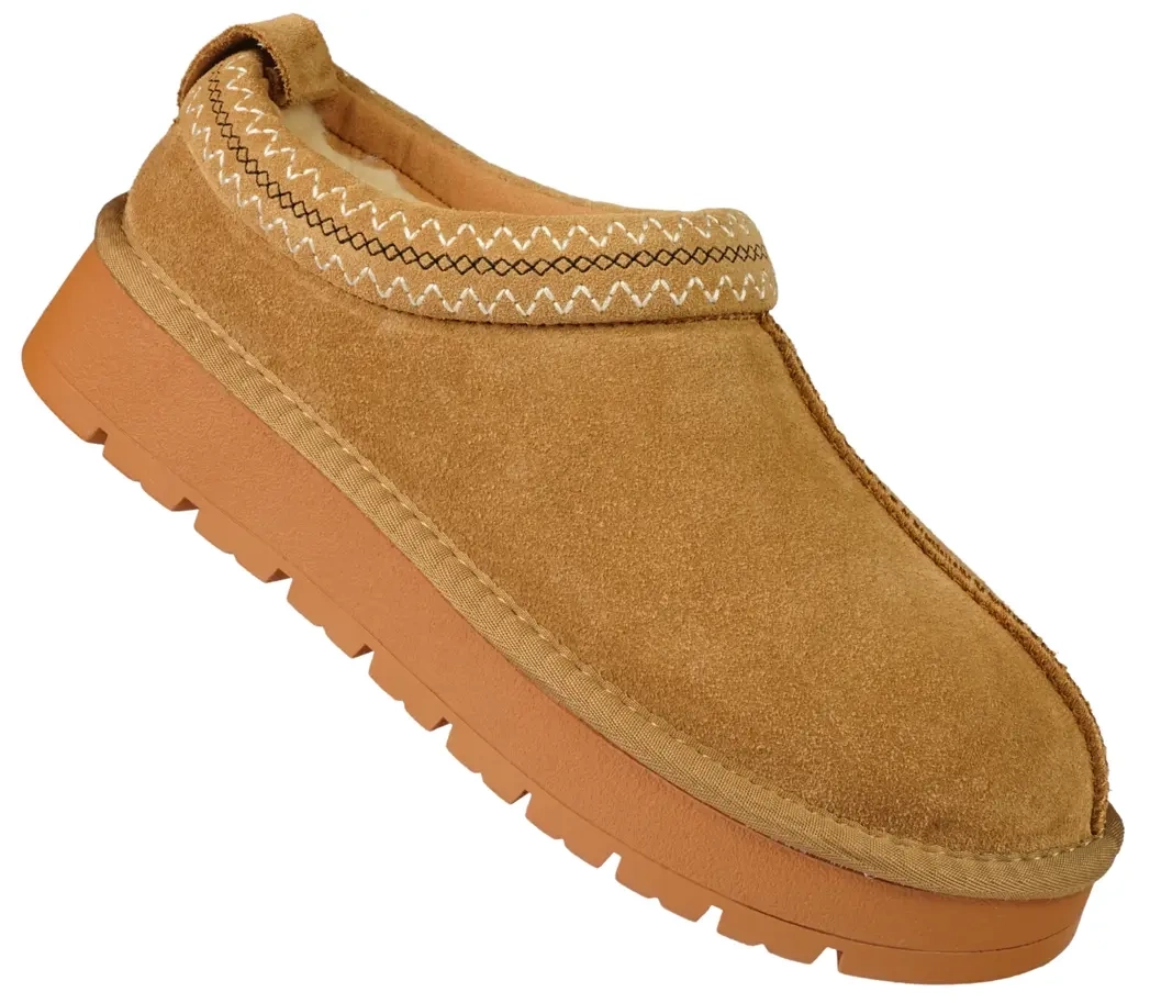 • Ciepłe i wygodne kapcie damskie American Club w kolorze camel. Wykonane z naturalnej skóry z miękkim ociepleniem i podeszwą TPR Light. Stylowe, lekkie i praktyczne – idealne na zimowe dni. Elegancja i komfort w jednym!