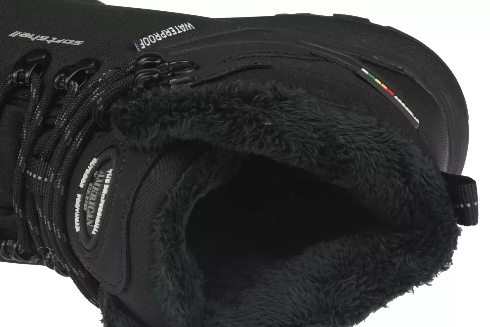Zimowe buty męskie nadwymiarowe Firmy American Club w kolorze czarnym. Ocieplane solidne obuwie wykonane z wysokiej jakości materiałów. Wiązane buty zimowe posiadają wodoodporną membranę Tripletex oraz cholewkę Softshell która chroni przed niską temperaturą, wiatrem, deszczem oraz śniegiem. Gruba podeszwa z bieżnikiem zapewnia dobrą przyczepność do podłoża oraz wygodę użytkowania. Wnętrze buta jest ocieplane co zapewni odpowiednią temperaturę nawet podczas zimowych dni. Męskie Obuwie Softshell jest wiązane dzięki czemu doskonale dopasowuje się do stopy. Podsumowując, ocieplane buty zimowe w idealny sposób sprawdzą się w jesienne oraz zimowe dni do codziennego użytku czy też w górskie wyprawy.