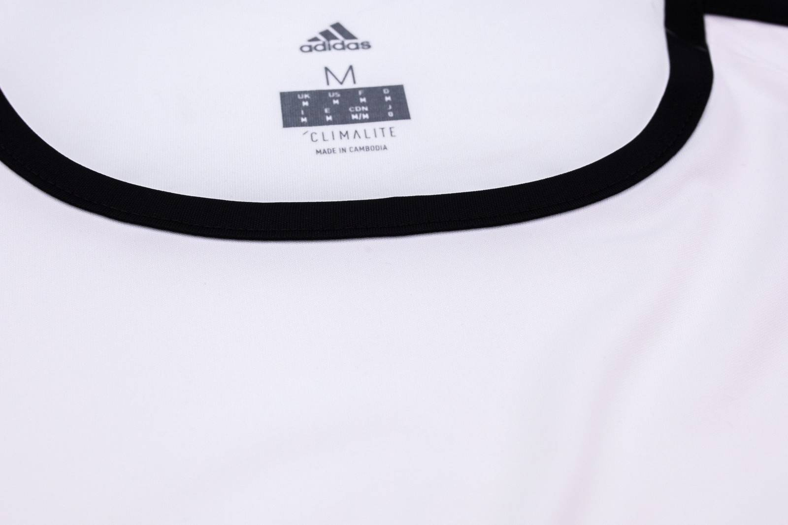 Tricou pentru bărbați de la Adidas, de culoare albastră. Tricoul are trei dungi decorative cusute și o inserție de țesătură de culoare contrastantă pe părțile laterale. Modelul este fabricat din 100% poliester. Tricoul are o croială strâmtă, dar nu foarte strâmtă, ceea ce îl face să fie confortabil și ușor de purtat. Modelul de tricou nu limitează mișcarea și este perfect atât pentru antrenament, cât și pentru uzura zilnică. Tricoul Adidas va fi perfect pentru toate tipurile de antrenament, inclusiv pentru antrenamentele de fotbal. Materialul elastic și elastic asigură libertatea de mișcare chiar și în timpul antrenamentelor intensive. Asortează tricoul cu pantaloni scurți potriviți sau pantaloni de trening mai lungi pentru a crea o ținută care nu te va speria deloc! În zilele mai friguroase, puteți să vă puneți o jachetă sport pentru a vă proteja împotriva vântului și a temperaturilor scăzute. Tehnologia CLIMATE folosită la producerea acestui tricou asigură o mai bună permeabilitate la aer, ceea ce este extrem de important în timpul antrenamentului. Produsul este nou și este însoțit de etichetele originale.