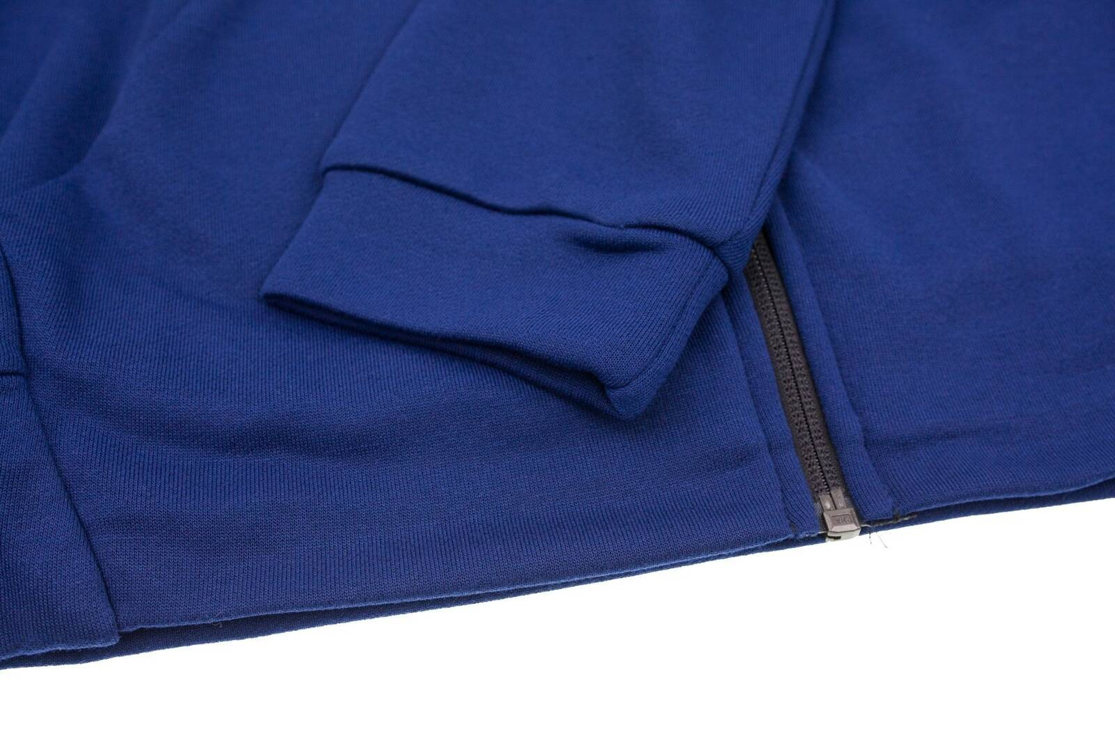 Rozpinana granatowa męska bluza firmy Nike z serii Dry Hoodie gwarantuje maksimum stylu i komfortu użytkowania. Wykonana została w 100% z najwyżej jakości poliestru, dzięki czemu nie gniecie się i zapewnia swobodę ruchu. Świetnie nadaje się na treningi lub na co dzień jako element stylizacji. Bluza w kolorze granatowym posiada czarne logo Swoosh umiejscowione na lewej piersi. Obecność kaptura gwarantuje ochronę głowy przed deszczem, wiatrem i zimnem; posiada ściągacz w postaci sznurka. Boczne kieszenie umożliwiają przechowywanie najpotrzebniejszych przedmiotów przy sobie. Ściągacze w pasie i przy rękawach zapewniają stabilność. Produkt jest nowy i posiada oryginalne metki.