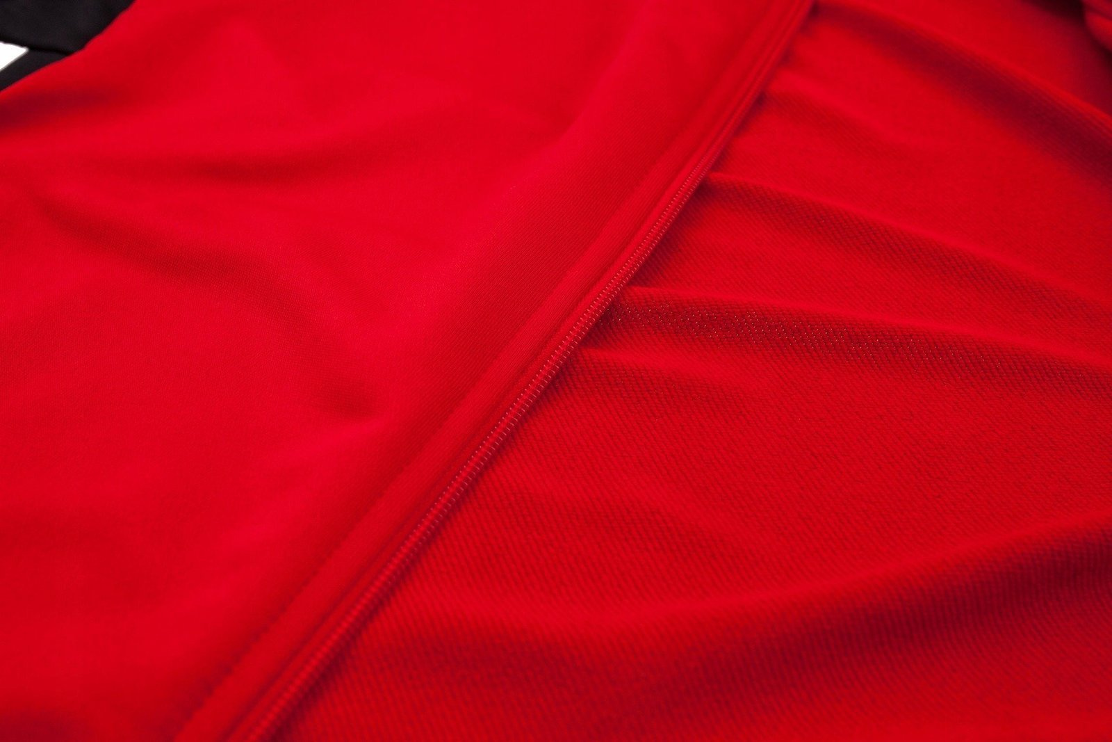 - Juniorska bluza zapinana na zamek marki Adidas, w kolorze czerwonym. Bluza pochodzi z serii Regista i została wykonana w 100% z poliestru. Projekt ten został uszlachetniony wstawkami materiałowymi w kontrastującym kolorze.