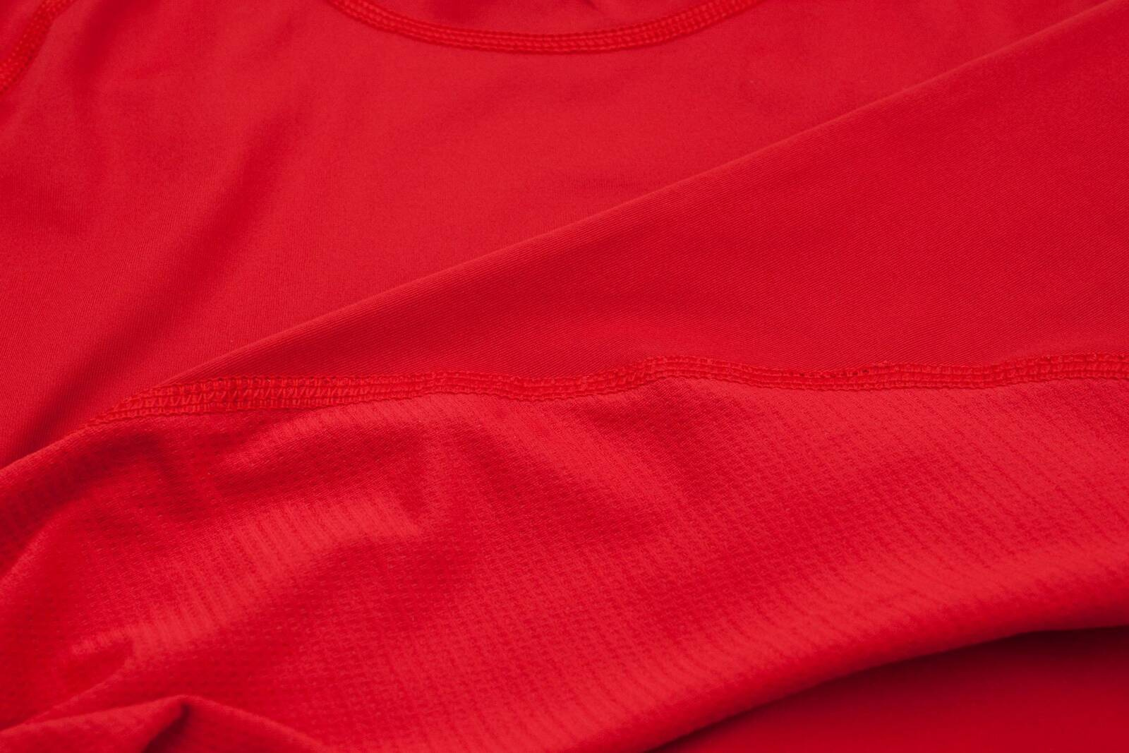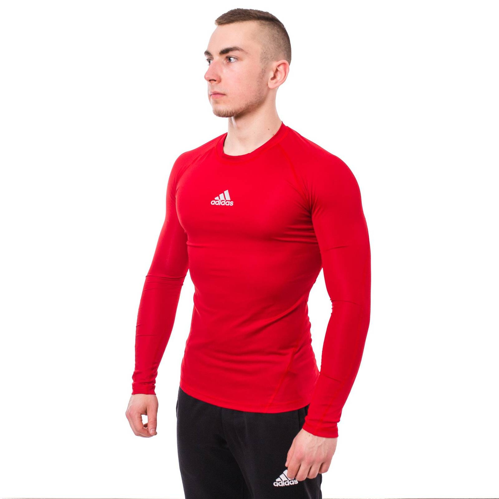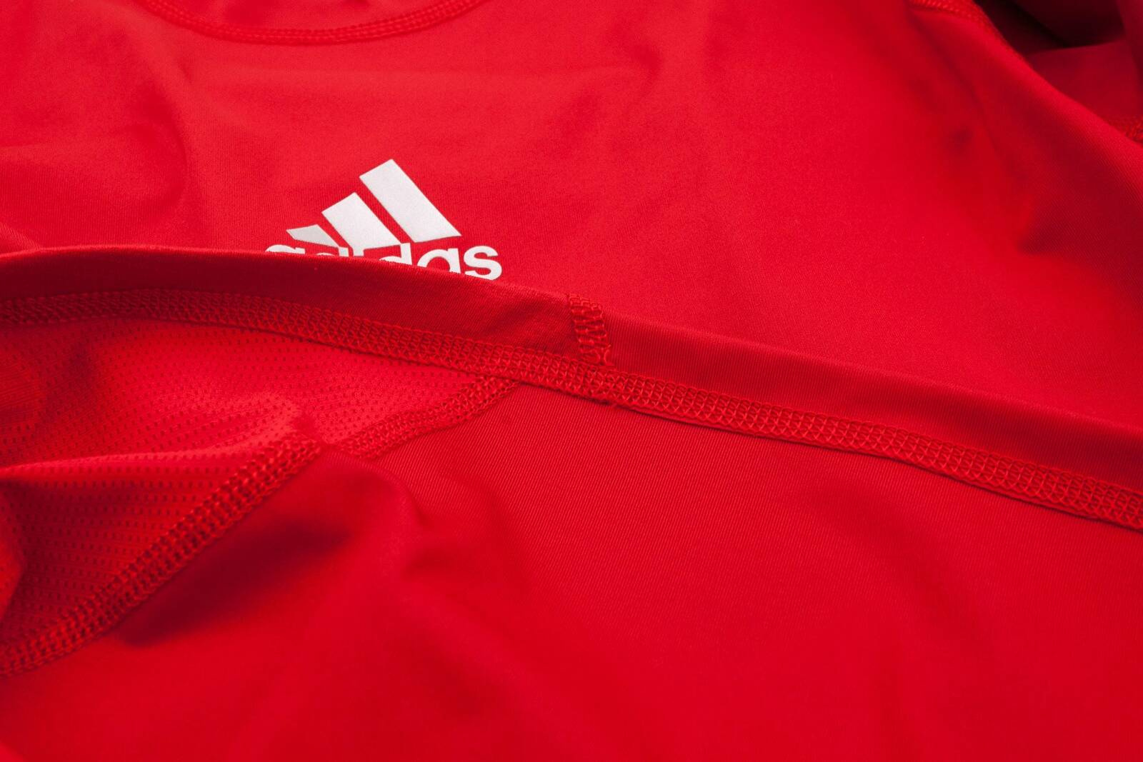 - Męska koszulka termo aktywna w kolorze czerwonym, z długim rękawem, marki Adidas. Bluzka została wykonana w 83% z poliestru i 17% elastanu. Pochodzi z serii Alphaskin i jest doskonała do treningu.