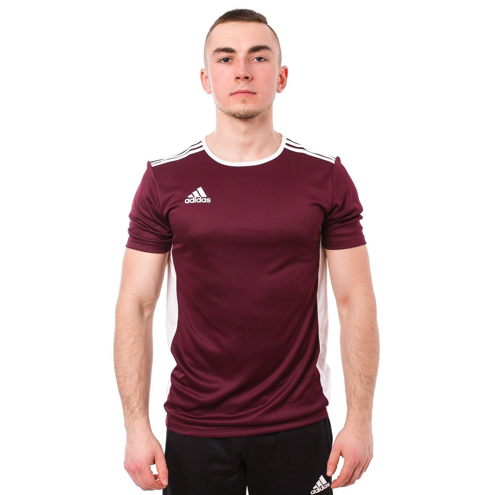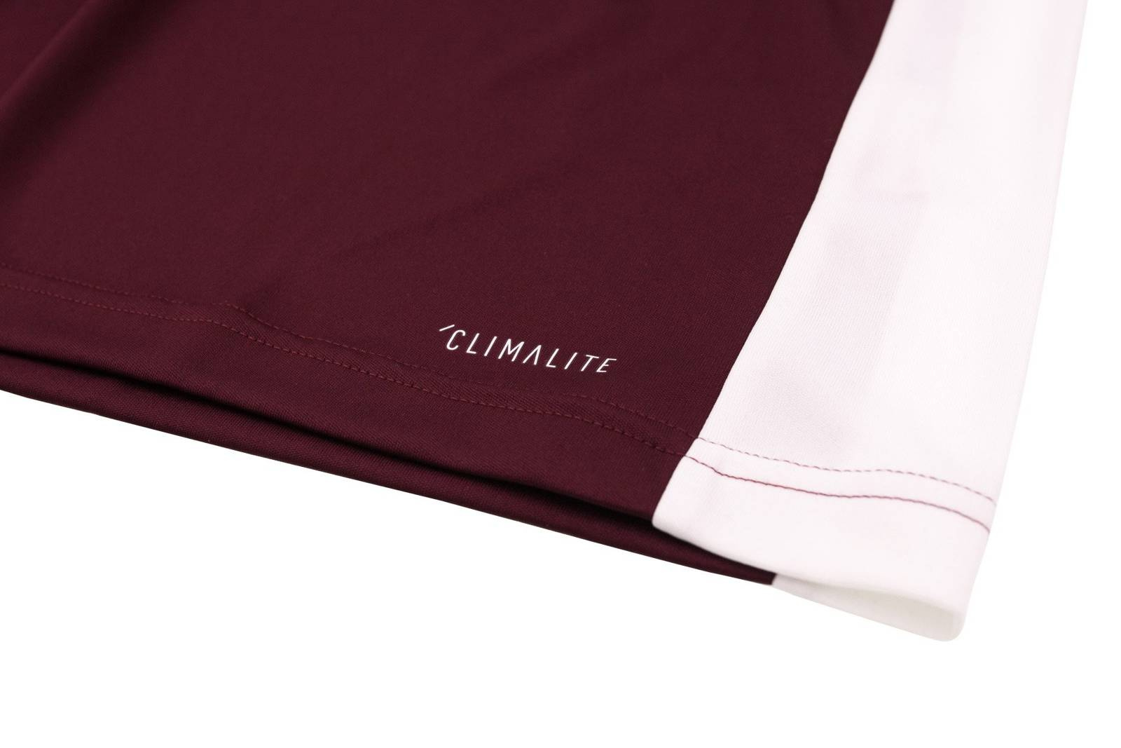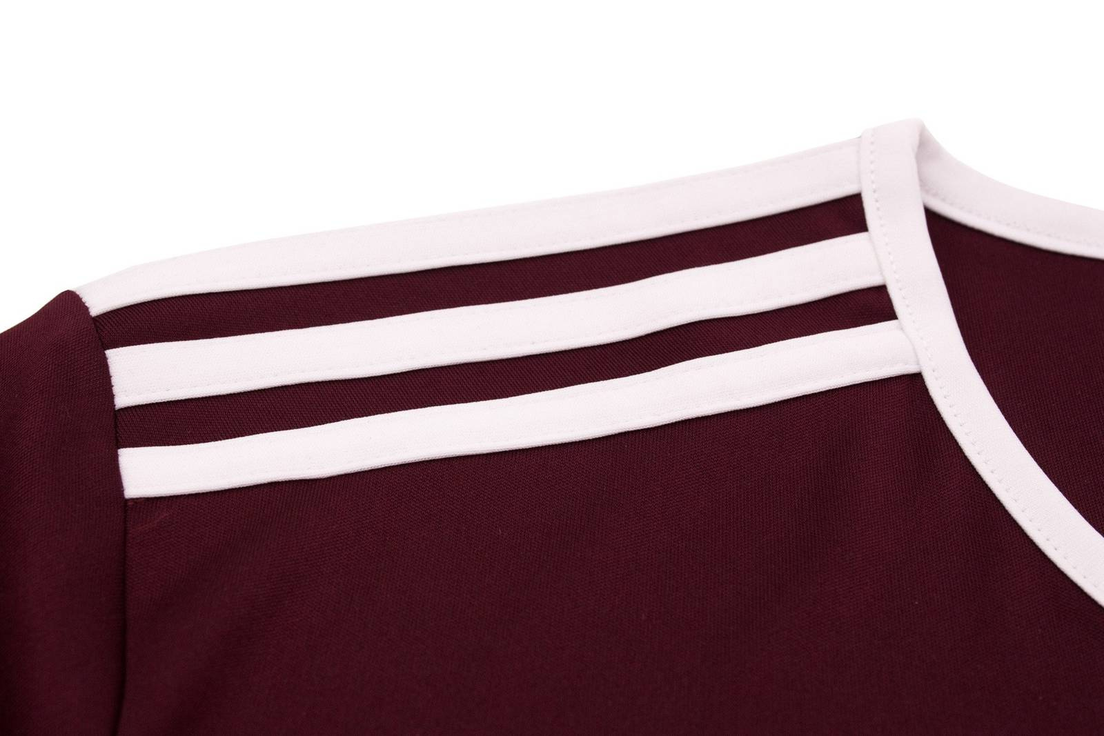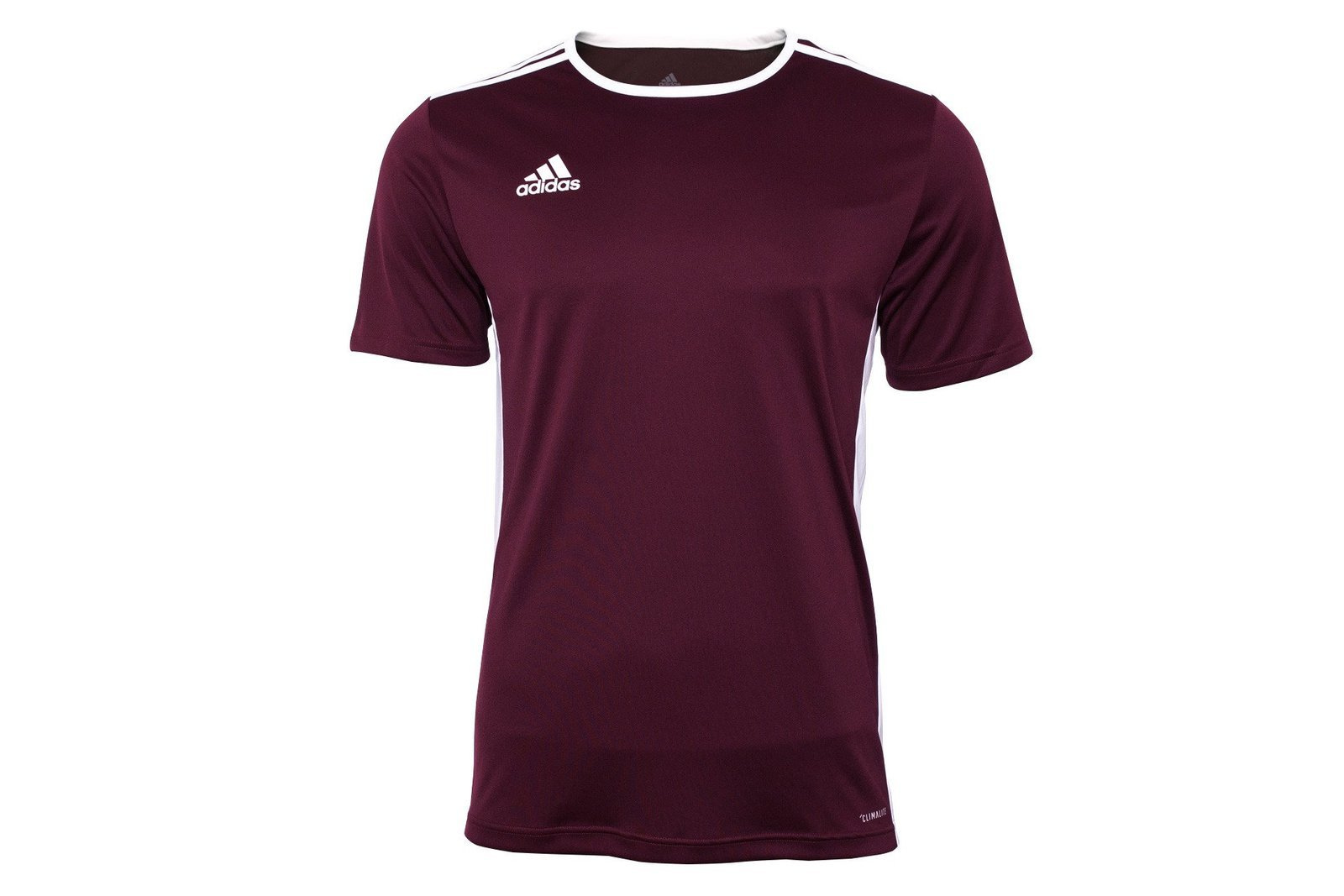 T-shirt męski marki Adidas w kolorze bordowym. T-shirt posiada naszyte ozdobne trzy paski oraz materiałową wstawkę w kontrastującym kolorze po bokach. Projekt został wykonany w 100% z poliestru. Krój koszulki jest dopasowany, ale nie obcisły, dzięki czemu użytkowanie jej bardzo wygodne i swobodne. Model koszulki nie ogranicza ruchów i jest doskonały zarówno do treningu jak i na co dzień. T-shirt Adidas będzie doskonały na wszelkiego rodzaju treningi, w tym piłkarskie. Elastyczny i rozciągliwy materiał zapewnia swobodę nawet podczas intensywnego treningu. Do koszulki warto dobrać odpowiednie szorty lub dłuższe spodnie dresowe, aby stworzyć strój, z którym żaden trening nie będzie straszny! W chłodniejsze dni można narzucić sportową kurtkę wiatrową, która ochroni przed wiatrem i niższą temperaturą. Technologia CLIMATE, którą zastosowano w produkcji tego T-shirtu zapewnia lepszą przepuszczalność powietrza, co podczas treningu jest niezwykle ważne. Produkt jest nowy i posiada oryginalne metki.
