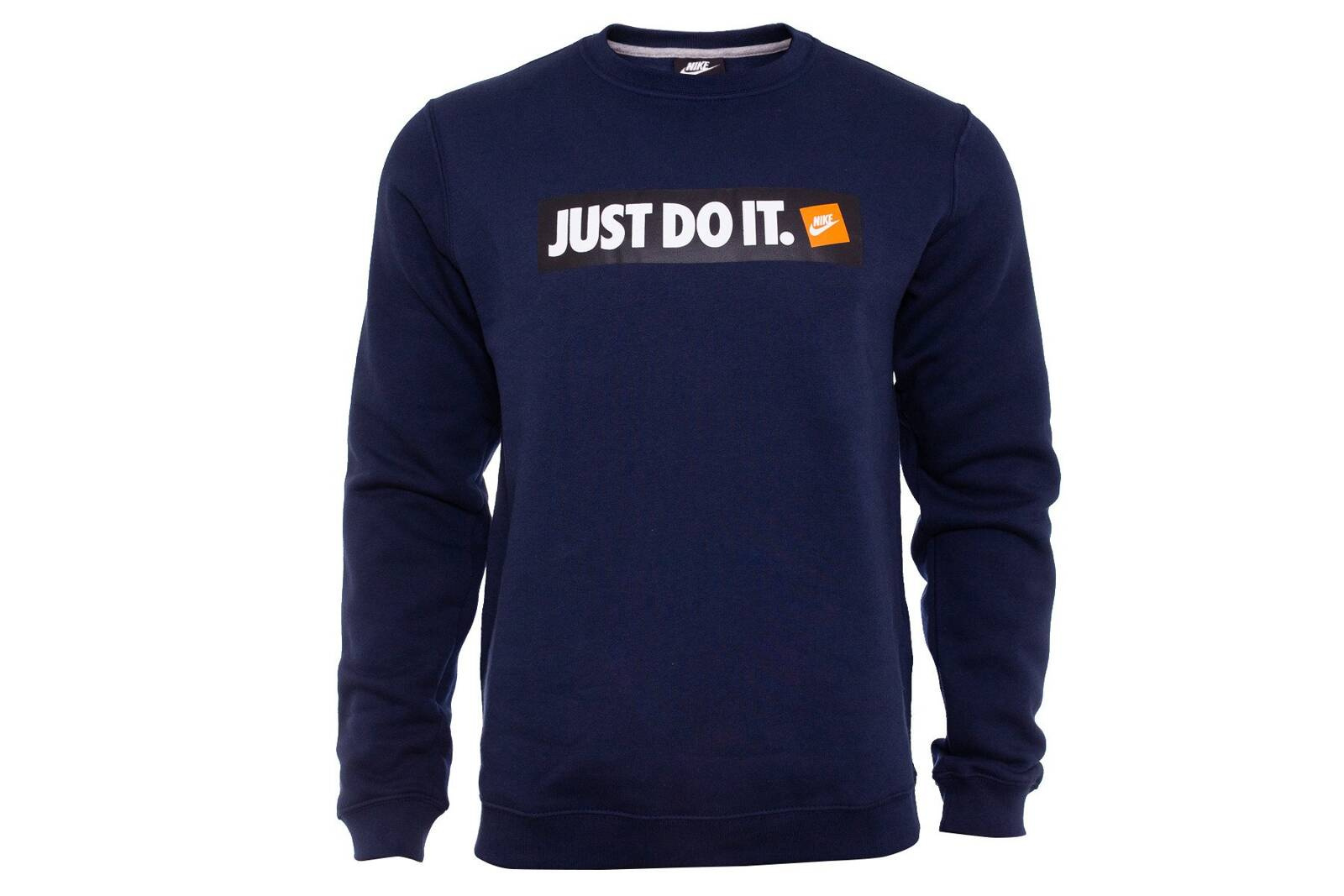 Męska bluza marki Nike w kolorze granatowym, wkładana przez głowę. Projekt pochodzi z serii NSW HBR CREW. Bluza posiada klasyczny i legendarny już napis „Just do it”. Bluzę wykonano w 80% z bawełny i 20% z poliestru. Bluza jest bardzo wygodna, miękka i doskonała do codziennego noszenia. Dzięki doskonałemu krojowi, nie ogranicza ruchów i prezentuje się na sylwetce doskonale. Bluza posiada ściągacze w rękawach oraz w pasie, dzięki czemu dopasowuje się do postury. Klasyczny kolor sprawia, że bluza pasuje do każdej stylizacji i okazji, dzięki czemu jej zakup to będzie inwestycja na kilka sezonów! Ponadto, bluza nie tylko wpisuje się w aktualne trendy, ale co więcej, jest ponad nimi – można mieć pewność, że bez względu na panującą modę, bluza będzie zawsze wyglądać atrakcyjnie. W chłodniejszy dzień ochroni przed chłodem i wiatrem, a także przyjemnie otuli. Sprawdzi się zarówno w terenie jak i na domowej kanapie!