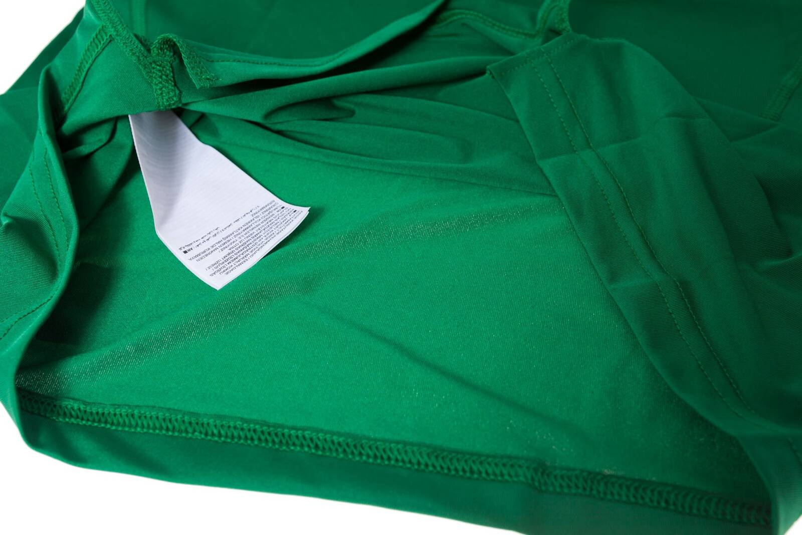 - Termoaktywna koszulka marki Nike w kolorze zielonym została wykonana z połączenia dwóch materiałów; składa się w 92% z najwyższej jakości poliestru i w 8% z elastycznego spandexu.