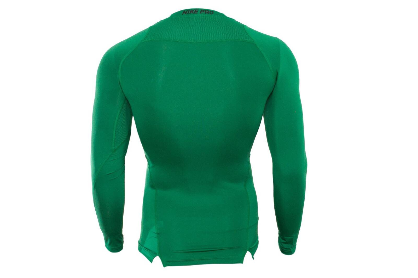 Męska koszulka termoaktywna z długim rękawem marki Nike w kolorze ciemnej zieleni. Logotyp marki znajduje się z przodu. Koszulka pochodzi z serii Pro Comp i została wykonana z 92% poliestru i 8% spandexu. Technologia Dri-Fit, którą wykorzystano przy produkcji tego modelu, zapewnia doskonałe odprowadzanie wilgoci z powierzchni ciała, dzięki czemu jest to produkt stworzony do treningów, nawet tych najbardziej dynamicznych. Krój koszulki termoaktywnej Nike jest mocno dopasowany i opinający mięśnie, a jednocześnie nie krępujący ruchów. Panowie mogą więc swobodnie ubierać koszulkę na trening na siłowni, cross fit czy bieganie. Świetny kolor podkręci każdą sportową stylizację, nadając jej charakteru. Elementy siateczkowe koszulki zwiększają dodatkowo przepuszczalność powietrza, a płaski szwy gładko przesuwają się po skórze. Większe wycięcie pod szyją zwiększa komfort użytkowania.