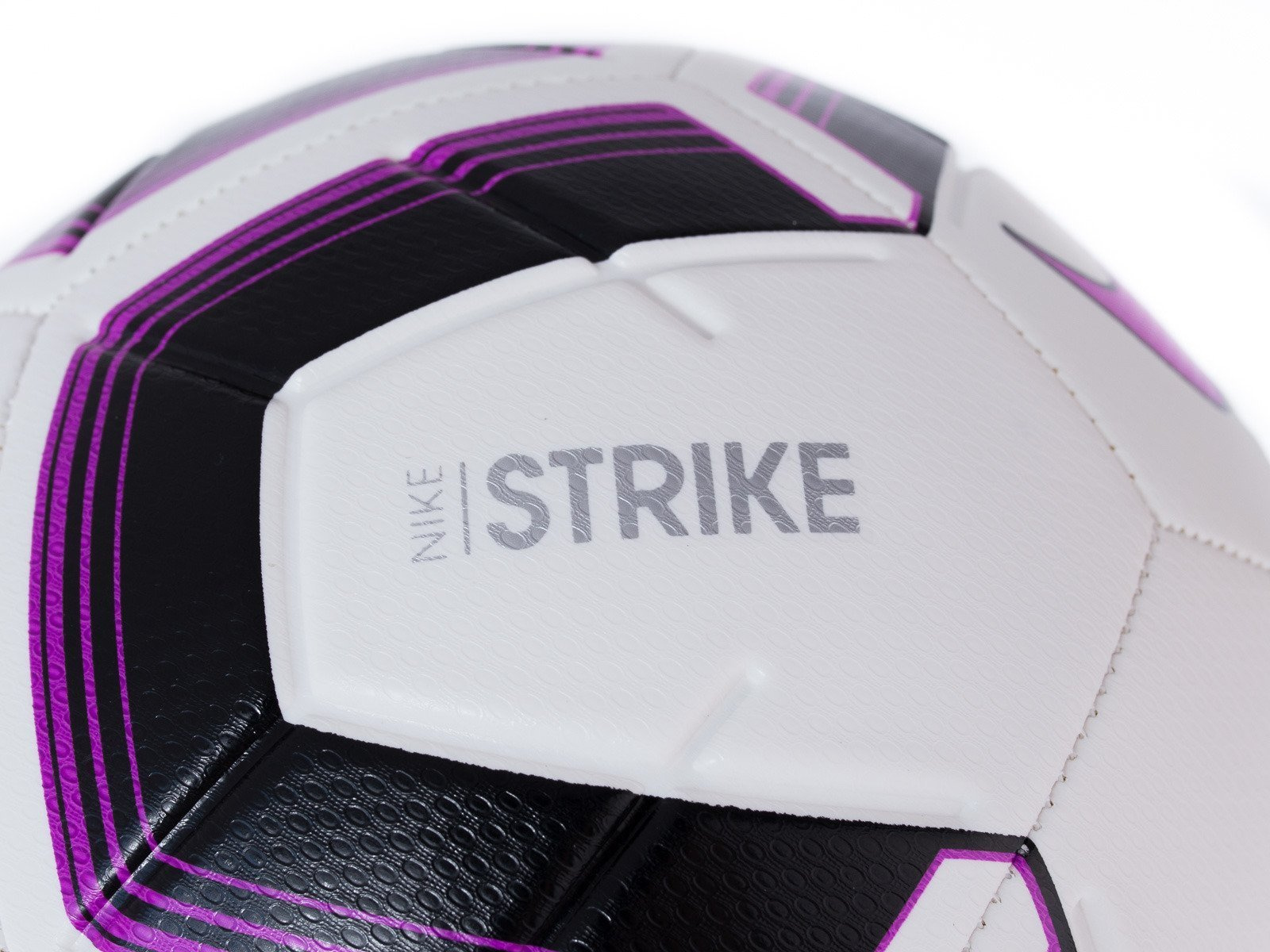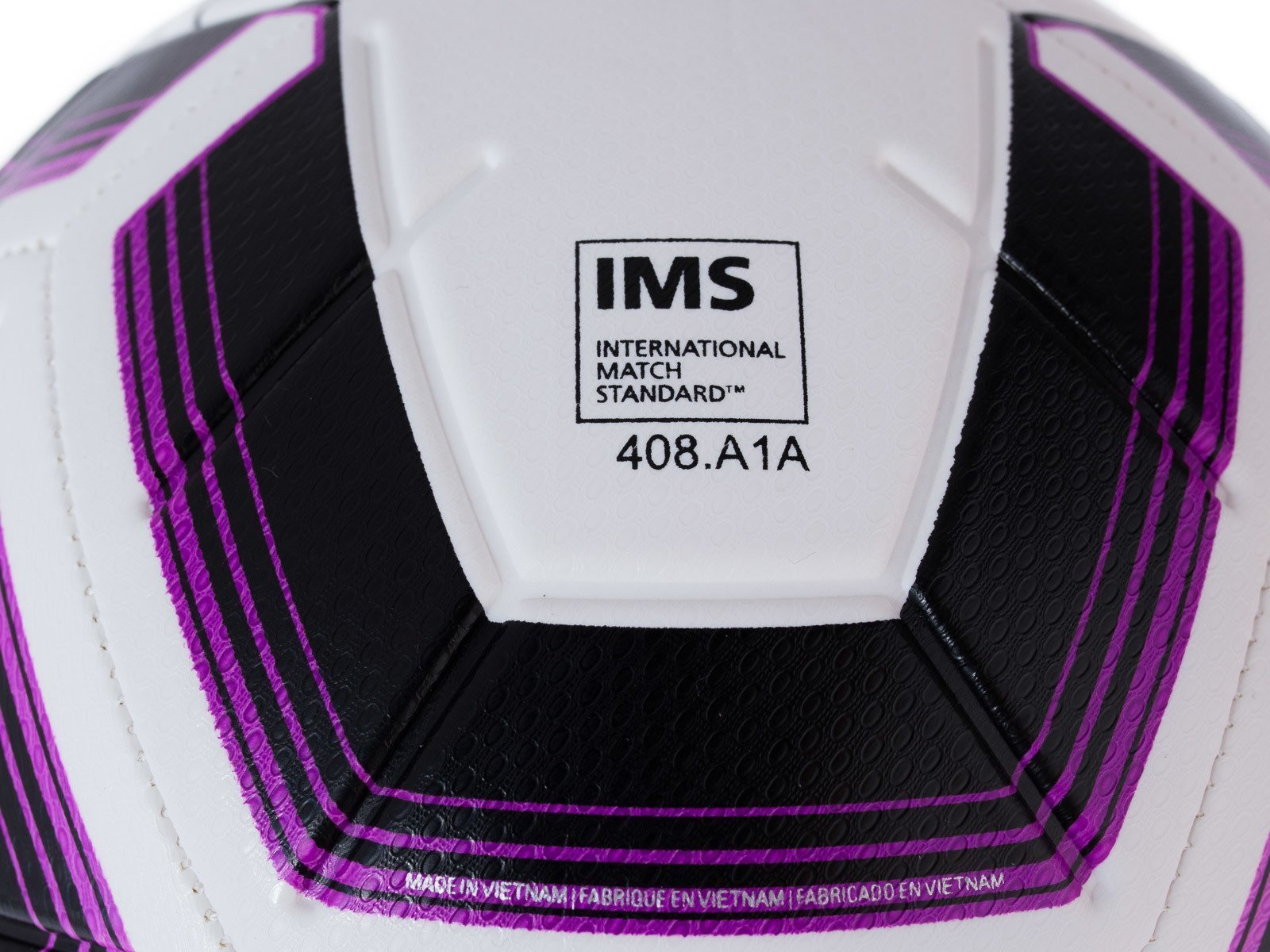 - Piłka nożna marki Nike w kolorze biało-fioletowym z czarnymi elementami. Piłka posiada certyfikat IMS (Międzynarodowy Standard Meczowy) i przeznaczona jest do gry na nawierzchni trawiastej. Wykonana z wysokich jakości materiałów syntetycznych