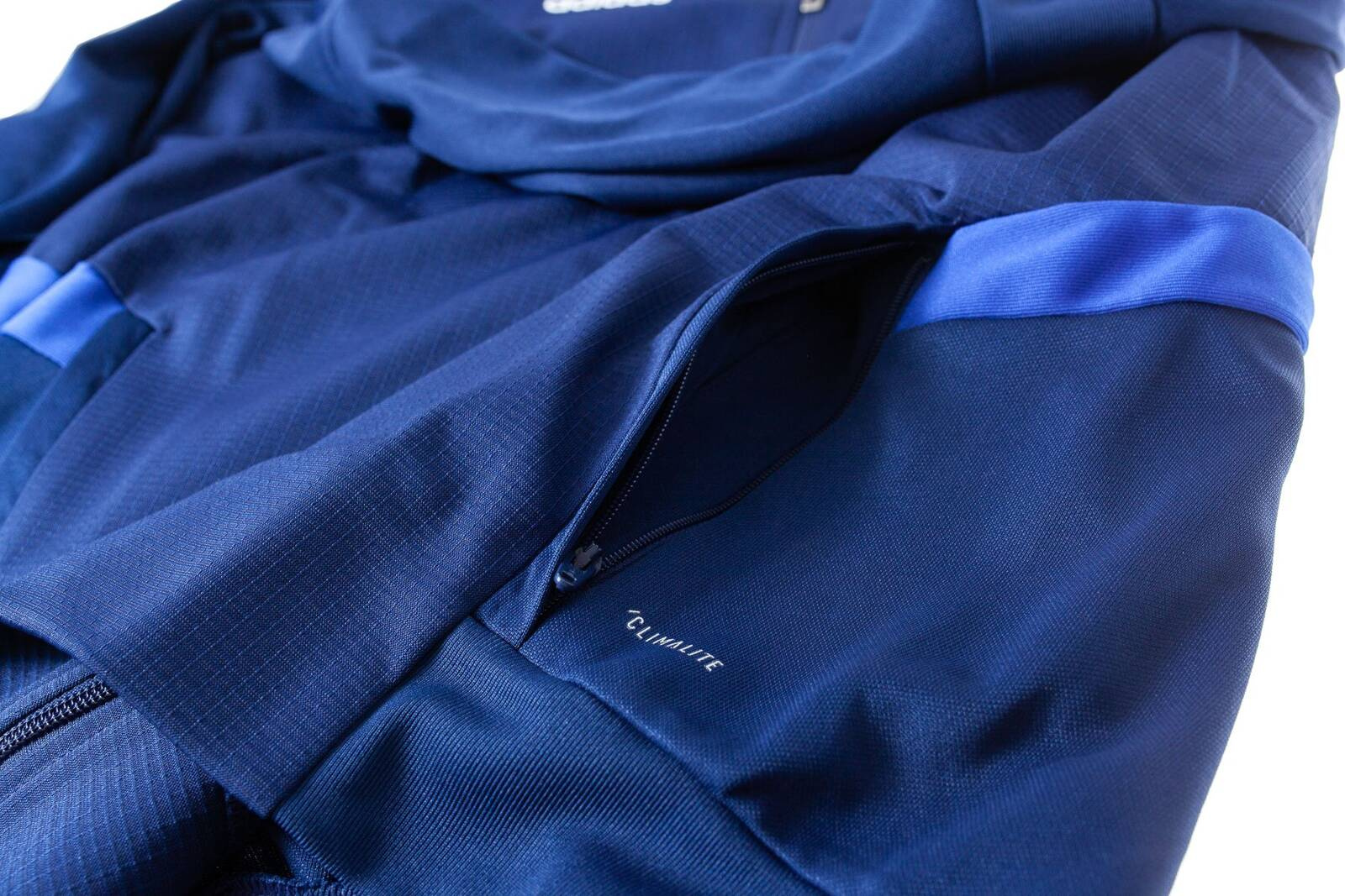 - Bluza firmy Adidas z kolekcji Tiro 19 Training w kolorze granatowym.Wykonana w 100% z najwyższej jakości poliestru zgodnie z technologią ClimaLite, która zapewnia skórze suchość i komfort oraz chroni przed przegrzaniem oraz przeziębieniem.