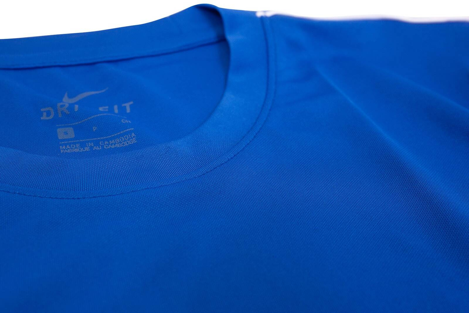 Koszulka firmy Nike z serii Dry Park 20 w kolorze niebieskim, została stworzona z myślą o aktywnych fizycznie mężczyznach. Model łączy w sobie styl z maksymalnym komfortem użytkowania. Idealnie sprawdzi się podczas wszelakiego rodzaju treningów siłowych oraz sportowych. Koszulka została wykonana w 100% z najwyższej jakości poliestru pochodzącego z recyklingu. Dzięki zastosowaniu technologii DRI-FIT wilgoć zostaje odprowadzana na zewnątrz materiału. Przylegający krój koszulki z zaokrąglonym dekoltem eksponuje sylwetkę i uwydatnia mięśnie. Model w kolorze niebieskim posiada wstawki w postaci białych pasków w górnej części rękawów oraz logo Swoosh umieszczone na prawej piersi. Produkt jest nowy i posiada oryginalne metki.