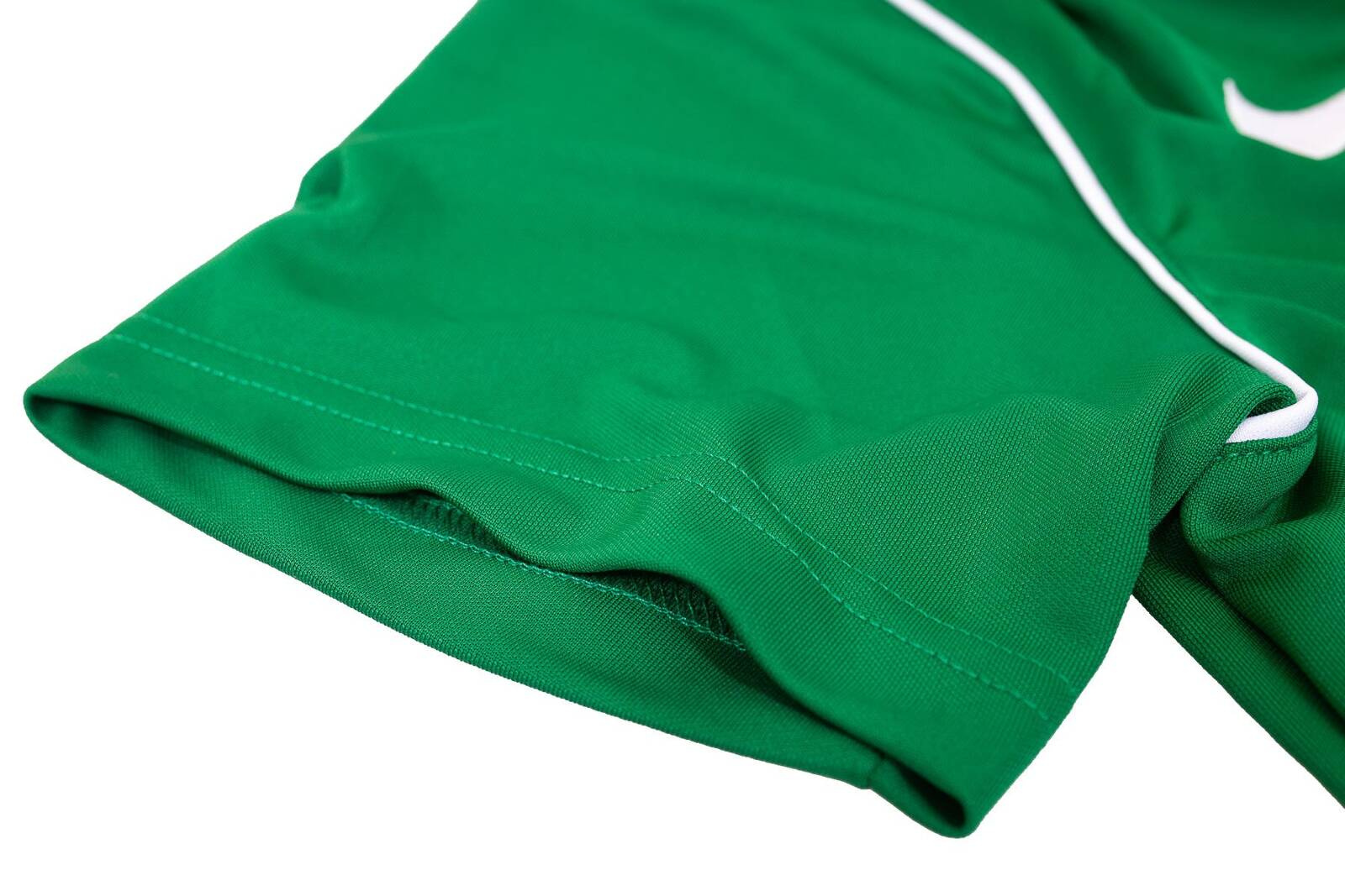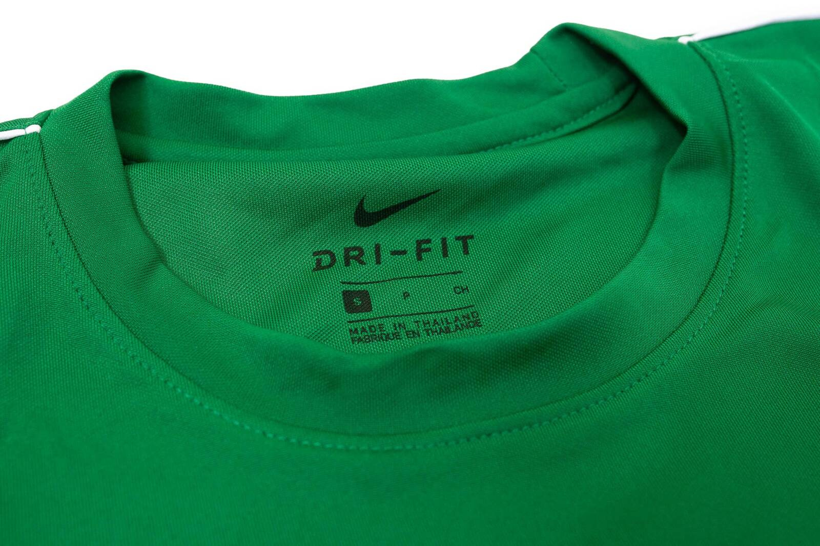 Koszulka firmy Nike z serii Dry Park 20 w kolorze zielonym, została stworzona z myślą o aktywnych fizycznie mężczyznach. Model łączy w sobie styl z maksymalnym komfortem użytkowania. Idealnie sprawdzi się podczas wszelakiego rodzaju treningów siłowych oraz sportowych. Koszulka została wykonana w 100% z najwyższej jakości poliestru pochodzącego z recyklingu. Dzięki zastosowaniu technologii DRI-FIT wilgoć zostaje odprowadzana na zewnątrz materiału. Przylegający krój koszulki z zaokrąglonym dekoltem eksponuje sylwetkę i uwydatnia mięśnie. Model w kolorze zielonym posiada wstawki w postaci białych pasków w górnej części rękawów oraz logo Swoosh umieszczone na prawej piersi. Produkt jest nowy i posiada oryginalne metki.
