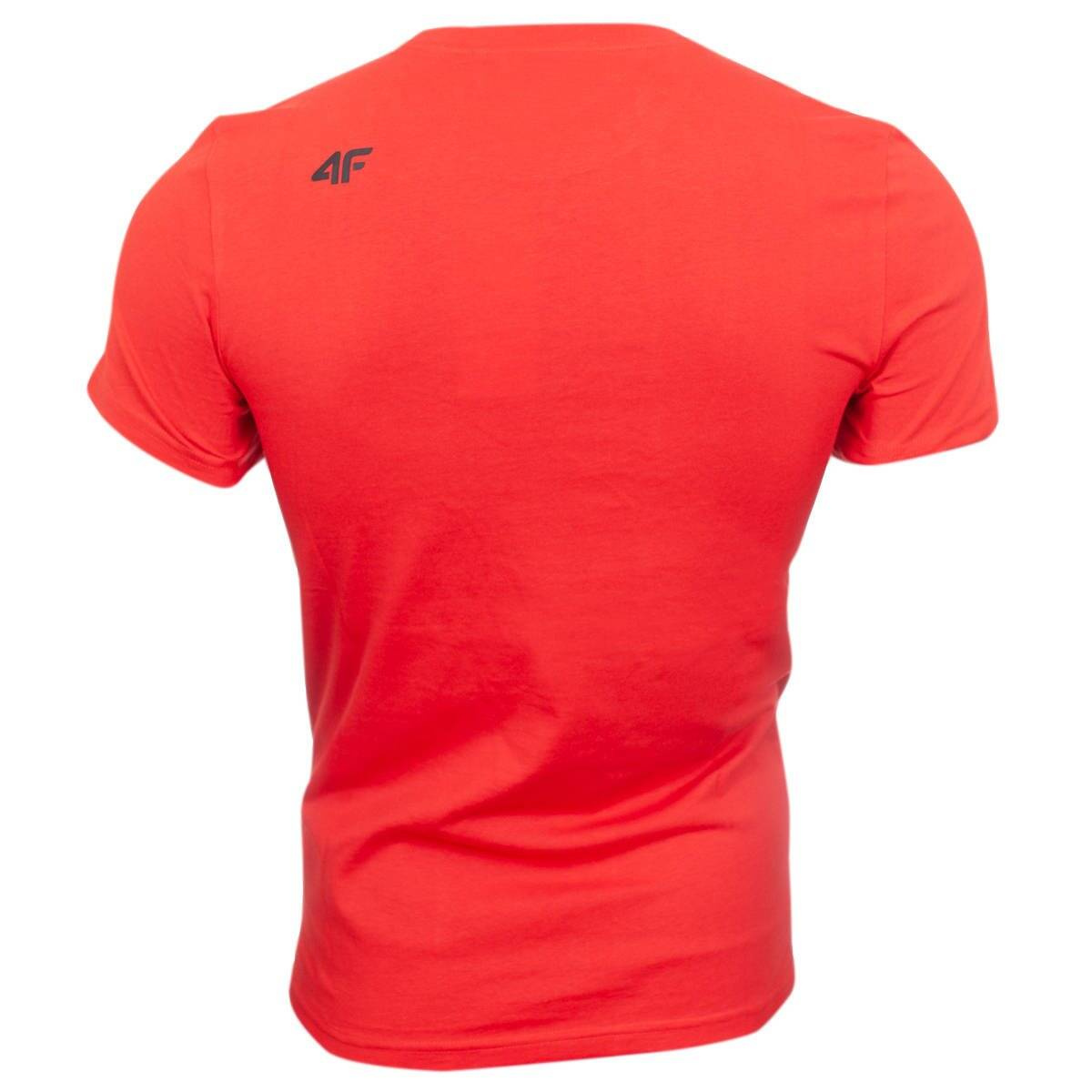 Męska koszulka w kolorze czerwonym marki 4F została stworzona dla mężczyzn ceniących sobie styl i komfort użytkowania ubrań. Wykonana w 100% z najwyższej jakości bawełny wysokoodpornej na plamy i zagniecenia. Regularny krój koszulki z antypeelingowym wykończeniem zapobiegającym mechaceniu się materiału. Model w żywym czerwonym kolorze posiada czarne logo umieszczone z przodu i z tyłu, po lewej stronie. Koszulka idealnie sprawdzi się jako element codziennej garderoby, ale również jako część stroju sportowego. Produkt jest nowy i posiada oryginalne metki.