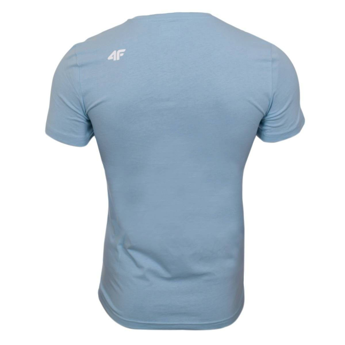 Koszulka męska w kolorze niebieskim marki 4F została wykonana w 100% z najwyższej jakości bawełny, aby zapewnić skórze odpowiednią wentylację i komfort użytkowania. Idealnie sprawdzi się przede wszystkim jako element codziennej garderoby, ale też jako część stroju sportowego. Fason koszulki idealnie komponuje się z grafiką i napisem umieszczonym na froncie i nadaje uniwersalnego charakteru. Materiał pozwala skórze oddychać i zapewnia maksimum swobody ruchów. Lekko obcisły krój koszulki eksponuje sylwetkę i uwydatnia mięśnie. Produkt jest nowy i posiada oryginalne metki.