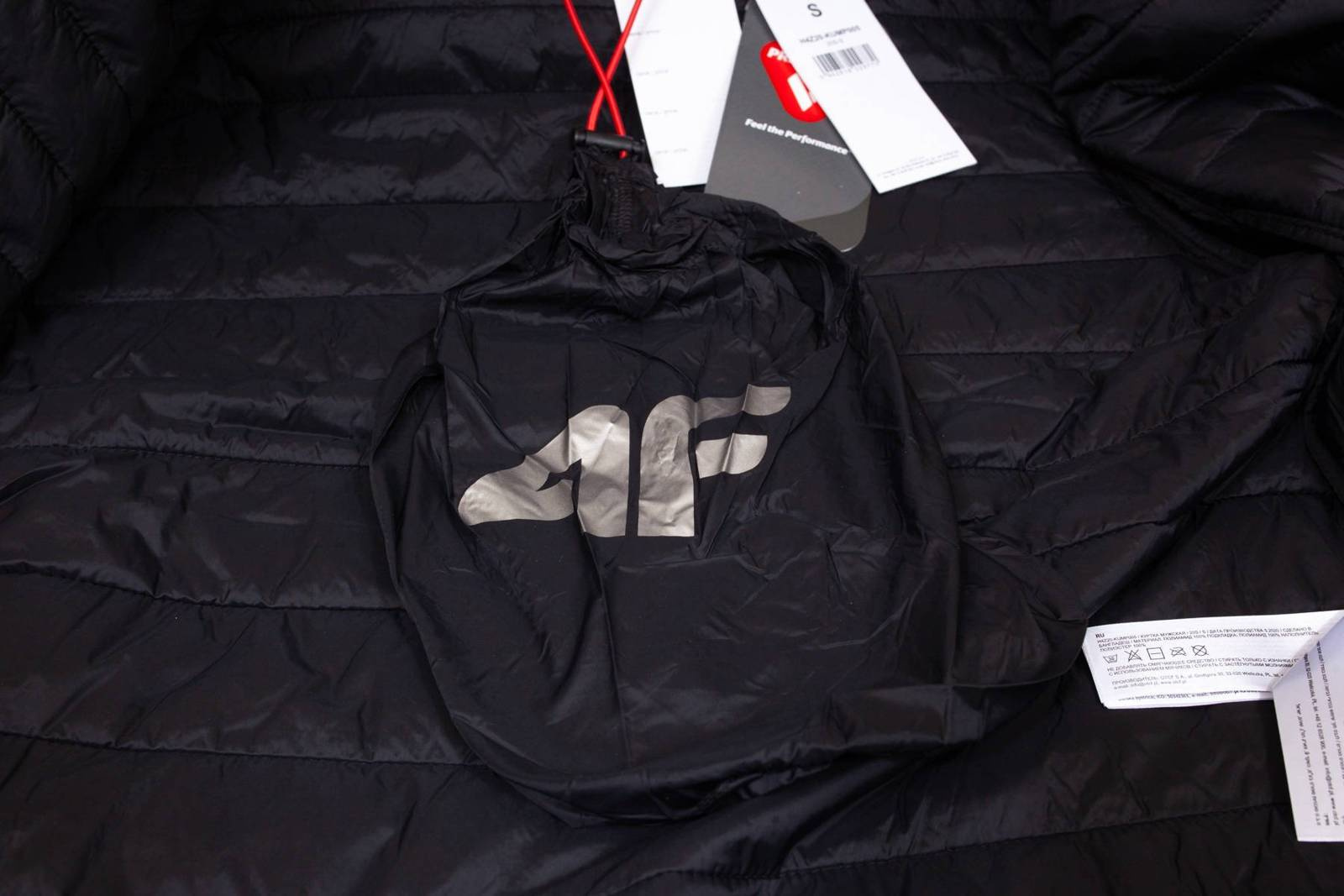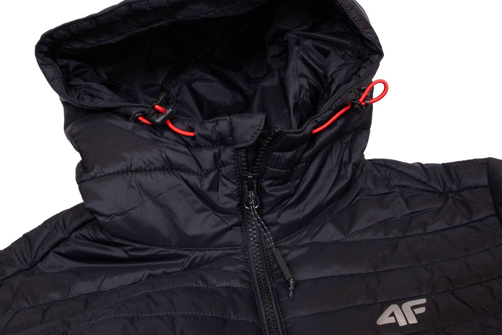 - Kurtka męska firmy 4F w kolorze czarnym jest niezwykle ciepłym i lekkim modelem, dzięki któremu poczujesz komfort w zimowe dni. Dzięki wszytym panelom z syntetycznym wypełnieniem kurtka daje gwarancję ciepła i suchości.