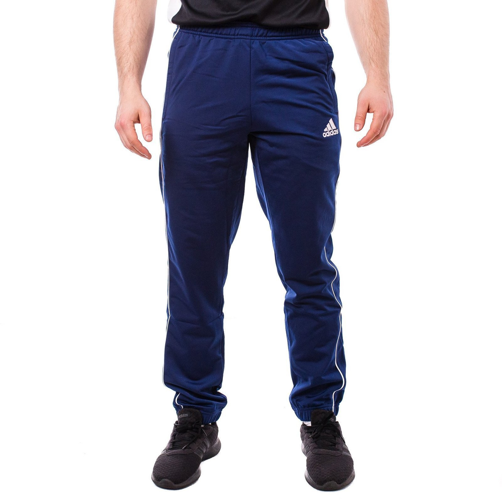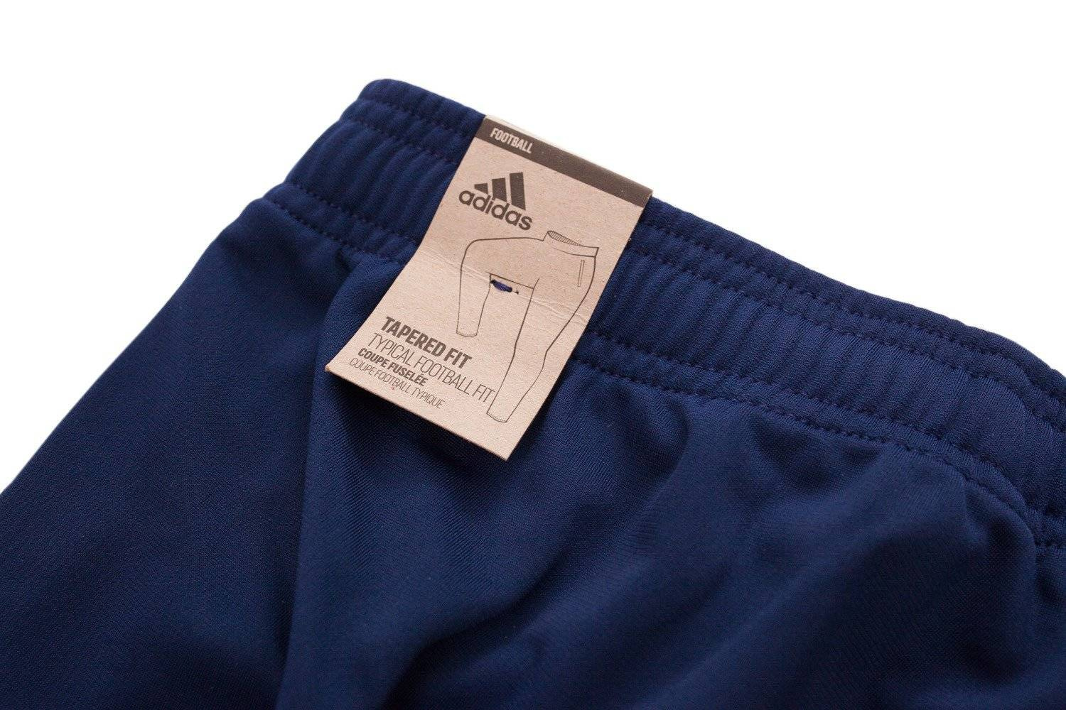 - Spodnie męskie marki Adidas w kolorze granatowym. Spodnie Adidas pochodzą z serii Core 18 i wykonane zostały w 100% z poliestru. Spodnie dresowe zostały zaprojektowane tak, aby noszenie ich było wygodne – krój jest luźny, dzięki czemu nie krępuje ruchów