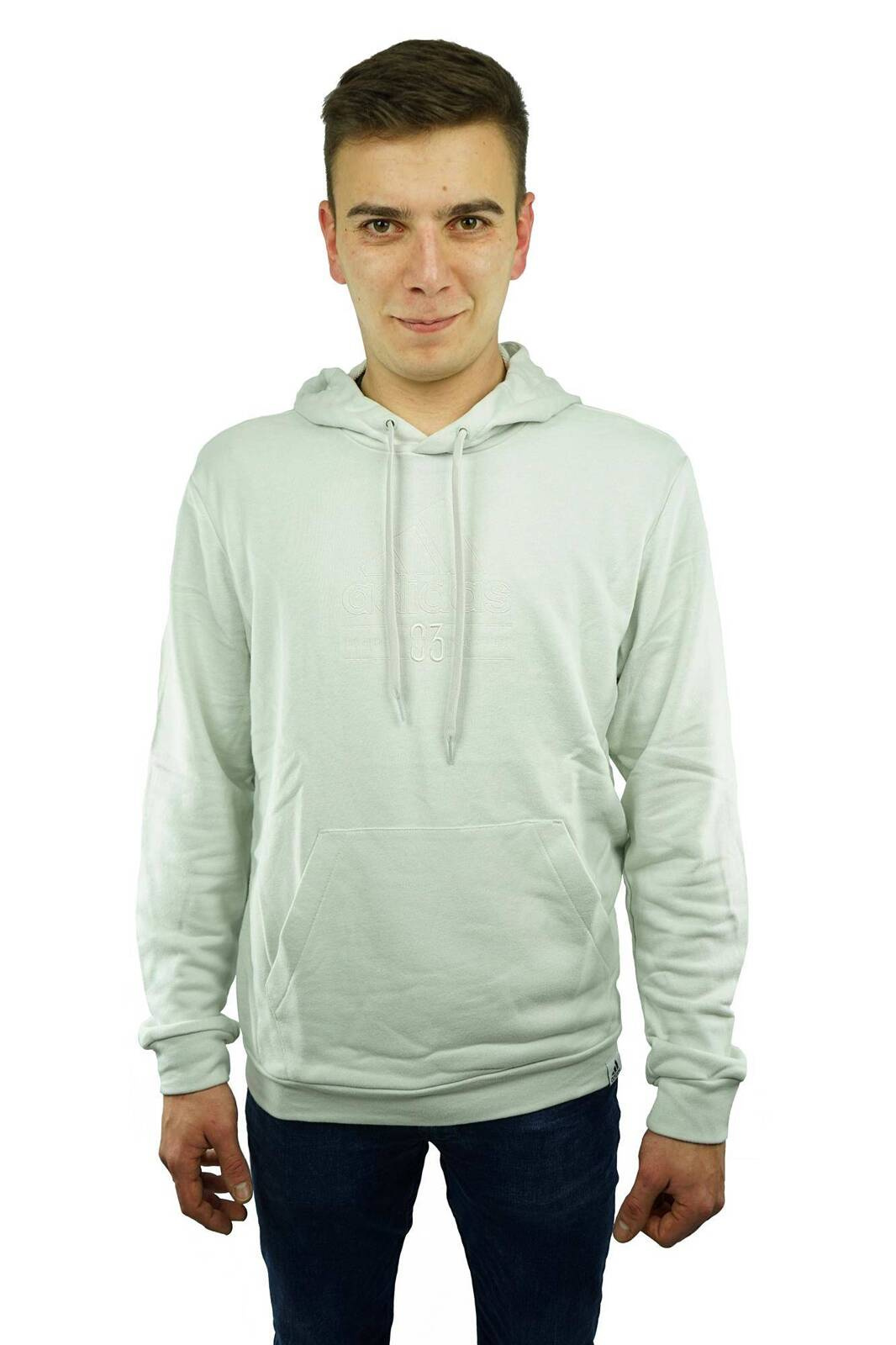 - Bluza męska marki Adidas w kolorze białym wykonana z najwyższej jakości materiałów - 68% bawełna, 32% poliester. Dół oraz rękawy zakończone mankietami, posiada regulowany kaptur. Klasyczny krój świetnie sprawdzi się na co dzień.