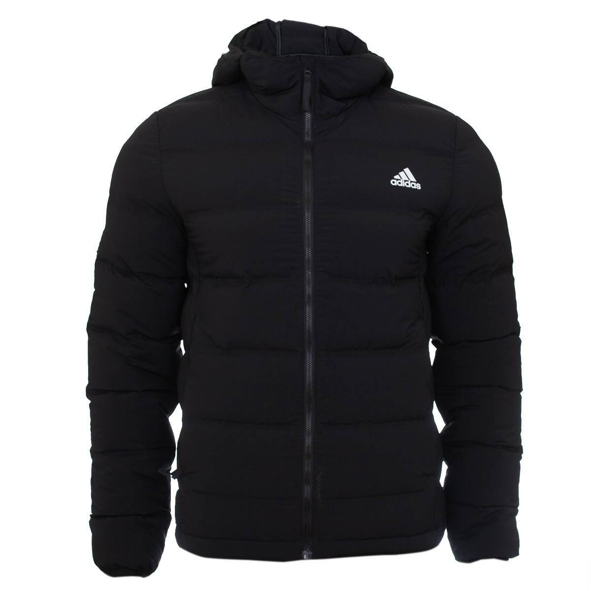 • Kurtka męska Adidas w kolorze czarnym idealna na jesienno - zimowe dni. Jej wypełnienie to w 80% kaczy puch, 20% pierze, a materiał, z którego jest wykonana to 86% nylon, 14% elastan. Posiada właściwości nieprzemakalne.
