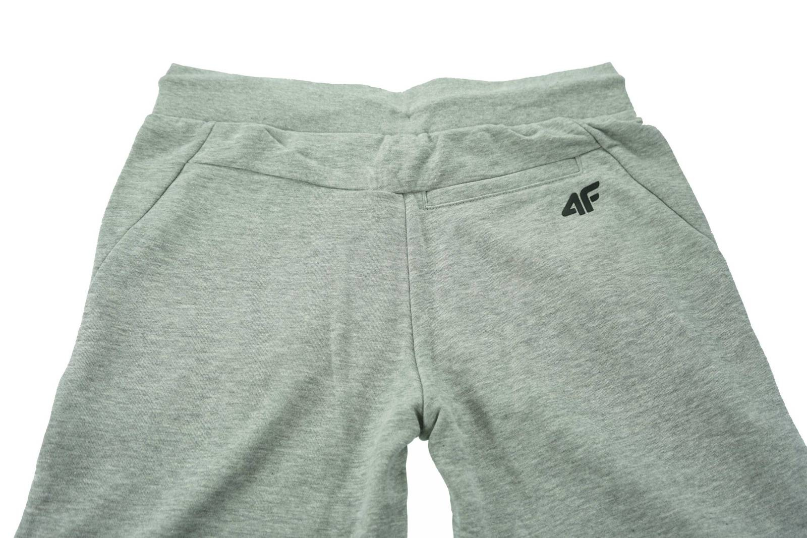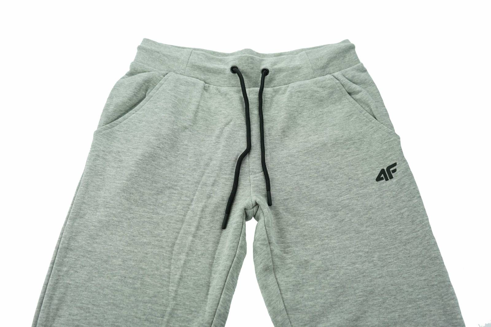- Spodnie dresowe marki 4F w kolorze szarym wykonane w 73% z bawełny, 23% z poliestru i 7% z wiskozy. Wewnątrz wzbogacono je o drapaną tkaninę, przez co nadadzą się one również na chłodniejsze dni.