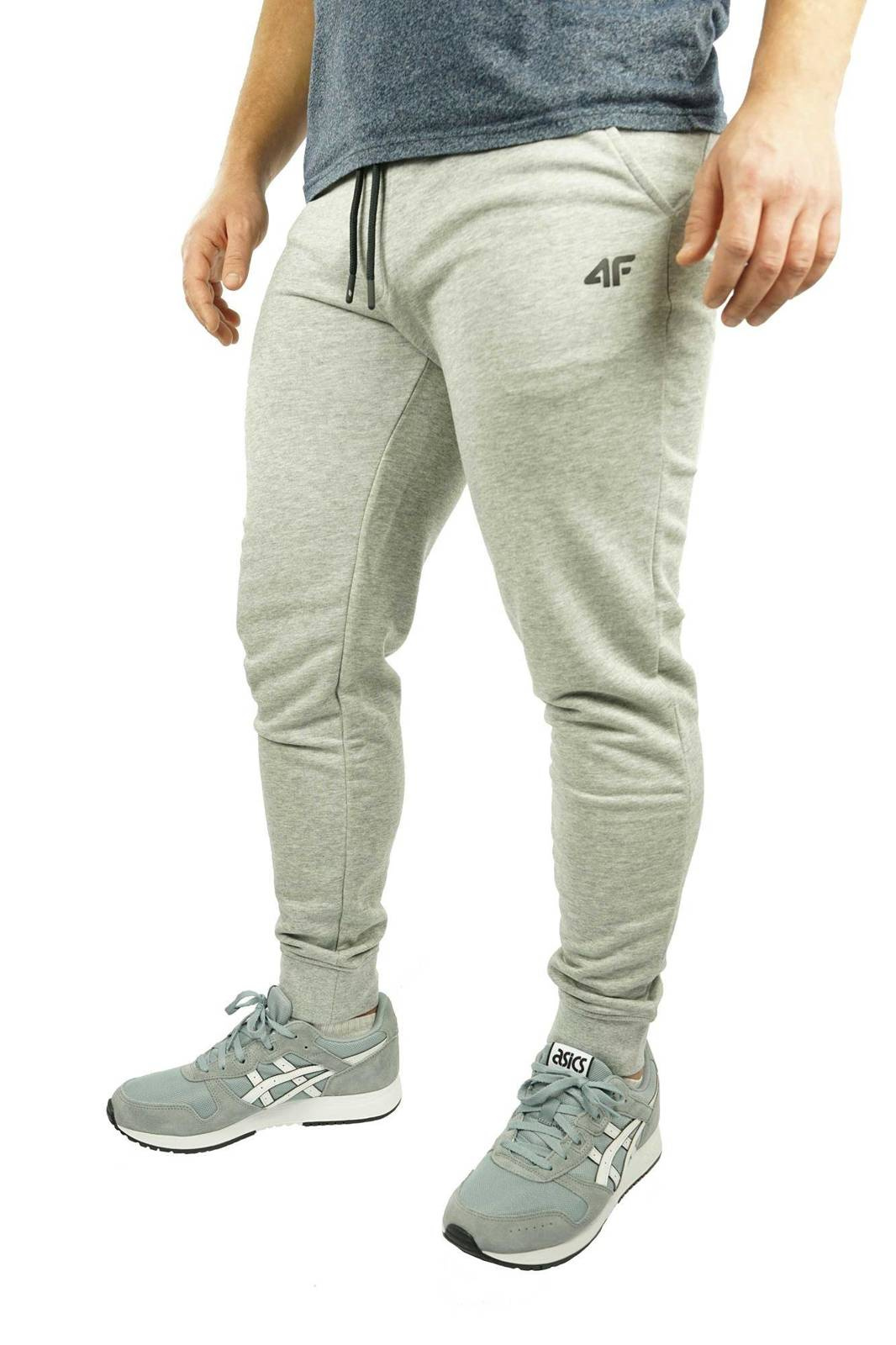 Męskie spodnie dresowe polskiej marki 4F w kolorze szarym. Model został wykonany z miękkiego materiału najwyższej jakości, który składa się w 73% z bawełny, 23% z poliestru i w 7% z wiskozy. Dopasowany krój zapewni komfort i wygodę na co dzień, ale również sprawdzi się podczas treningów. Wewnątrz spodnie zostały ocieplone drapaną tkaniną, więc sprawdzą się w okresie jesienno - zimowym. Wyposażono je w elastyczną talię regulowaną sznurkiem, dzięki czemu można je dopasować do każdego rodzaju sylwetki. Posiadają ściągacze u dołu, co zmniejsza ryzyko utraty ciepła, a po bokach umieszczono dwie otwarte kieszenie. Spodnie te są na tyle uniwersalne, że dopasują się do każdej męskiej stylizacji. Produkt jest nowy, posiada oryginalne metki.